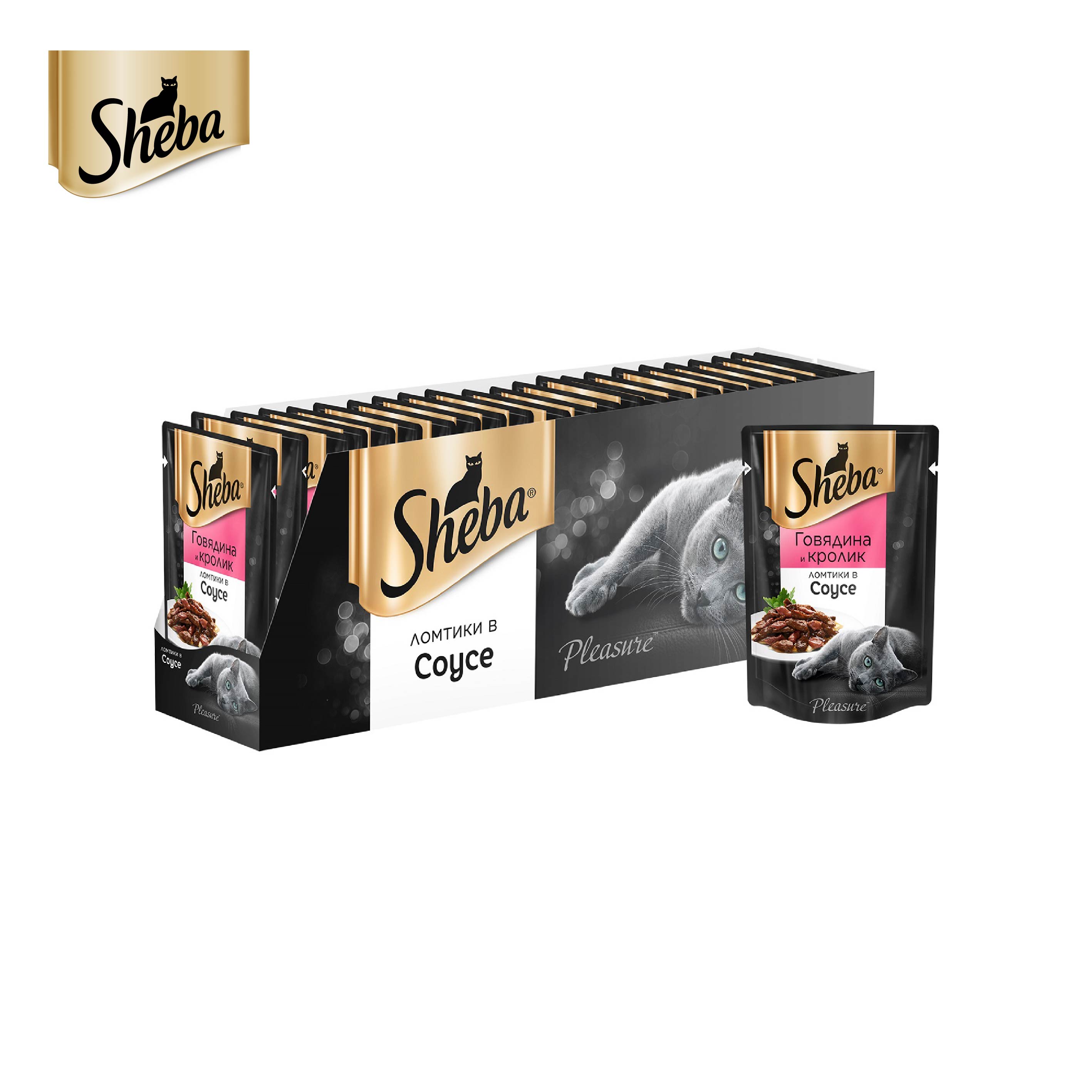 Влажный корм для кошек Sheba Ломтики в соусе говядина и кролик, 24 шт по 85 г.