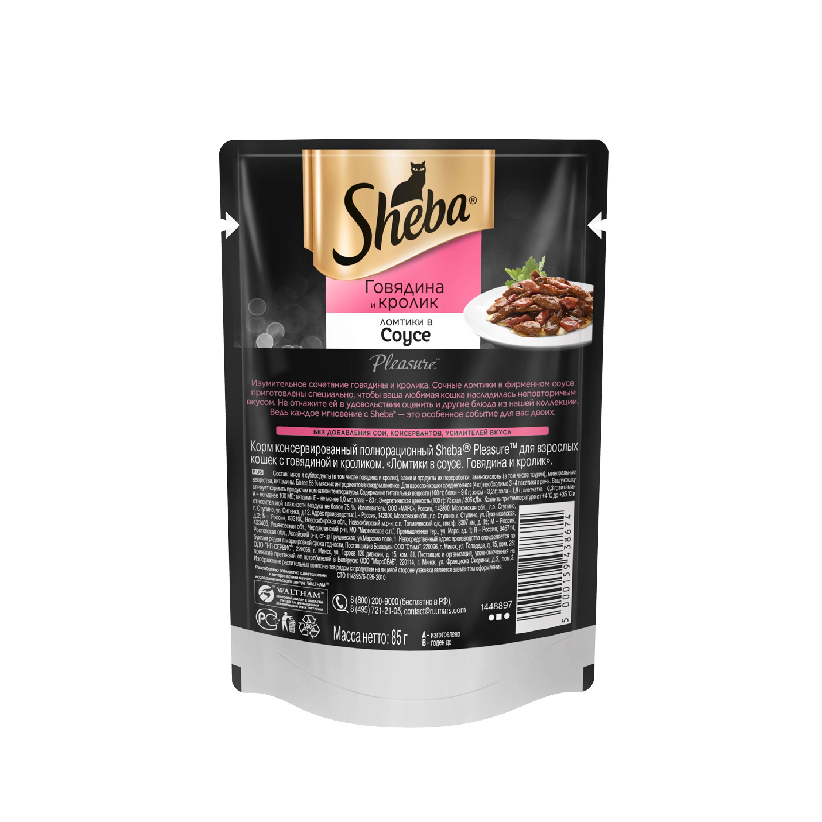 Изумительное сочетание говядины и кролика. Cочные ломтики в фирменном соусе приготовлены специально, чтобы ваша любимая кошка насладилась неповторимым вкусом. Не откажите ей в удовольствии оценить и другие блюда из нашей коллекции. Ведь каждое мгновение с Sheba® – это особенное событие для вас двоих.