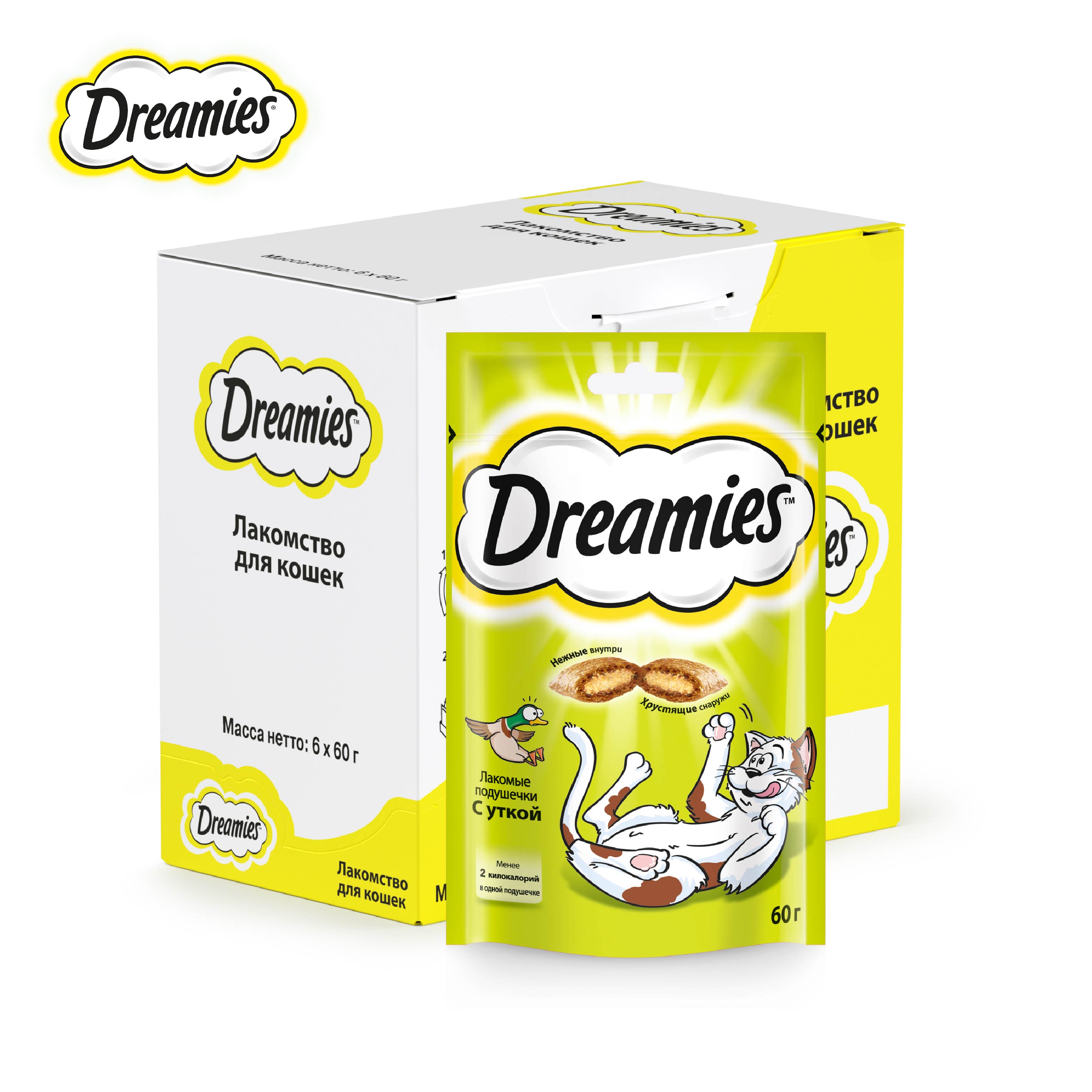 Лакомство для кошек Dreamies подушечки с уткой, 6 шт по 60г