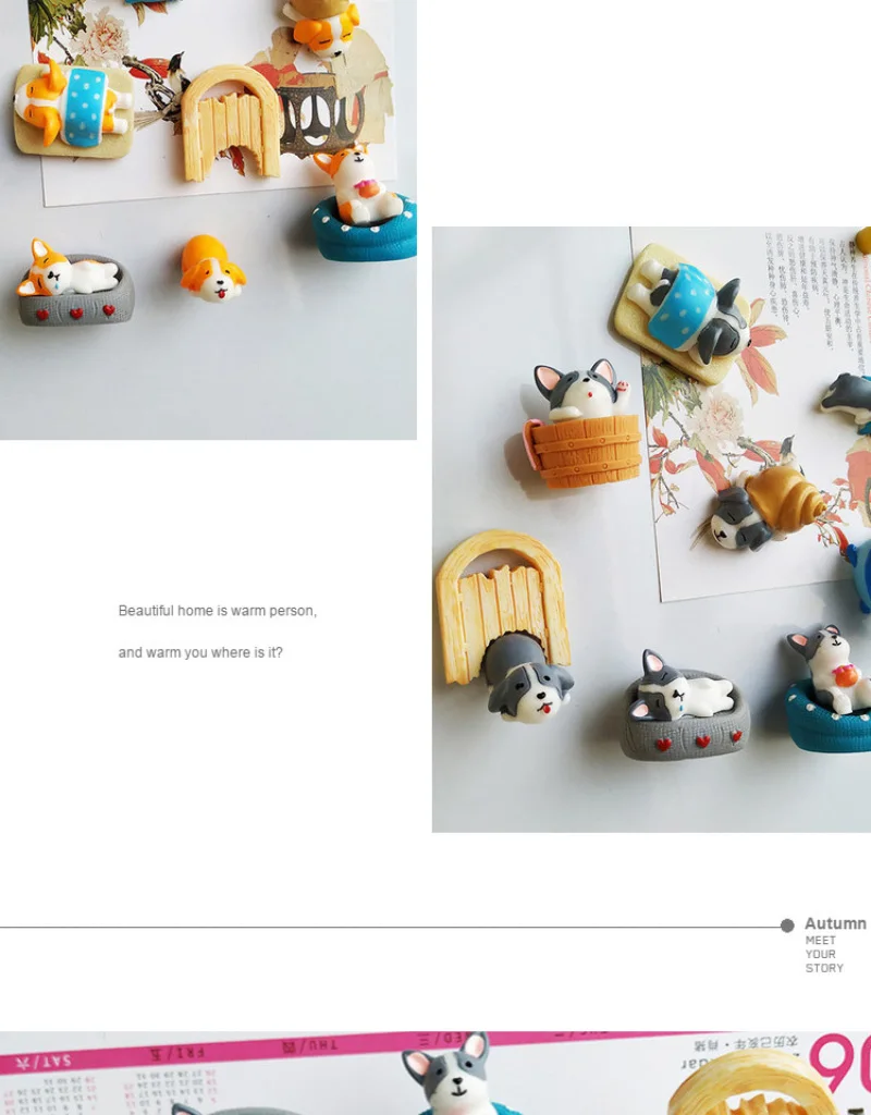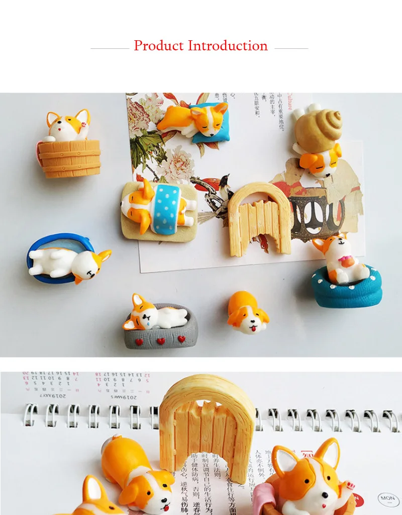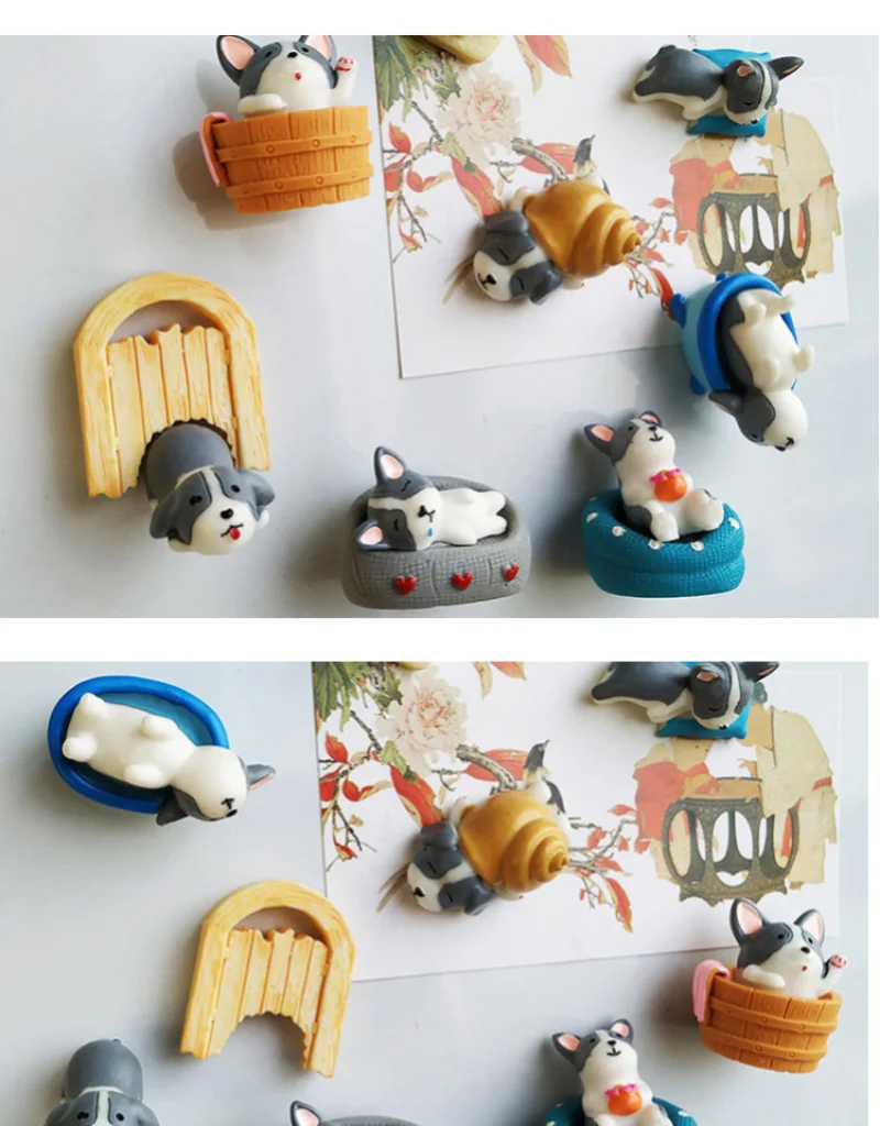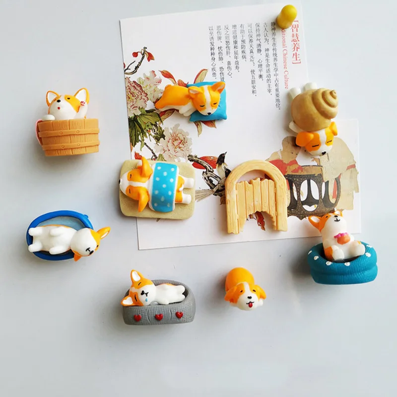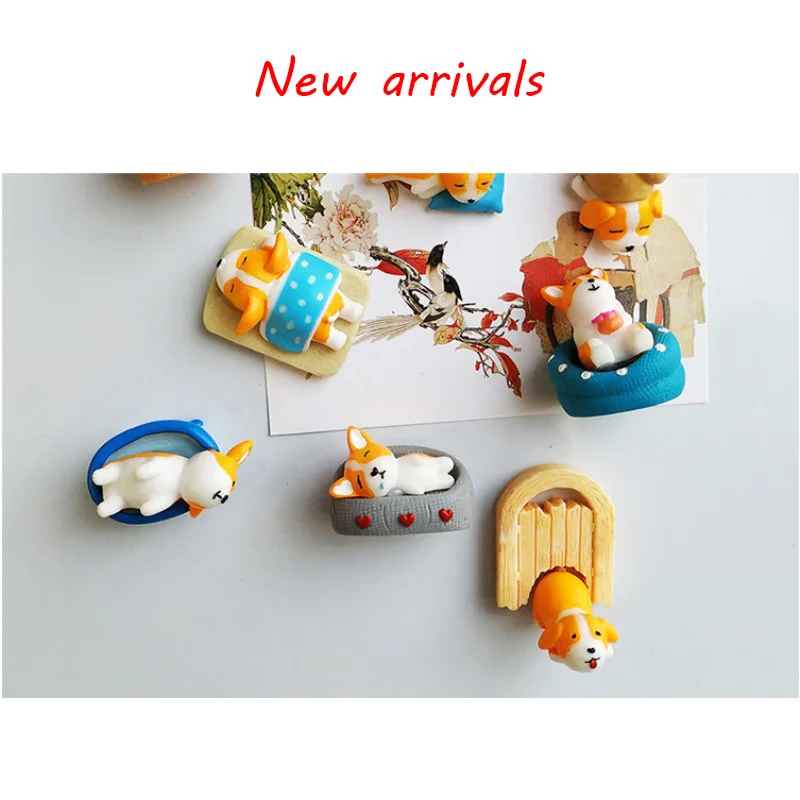 9 шт./лот, оптовая продажа, Бесплатная доставка, резиновый магнит на холодильник, милые игрушки с изображением корги и лайки, магнитная наклейка, домашний декор, детские игрушки