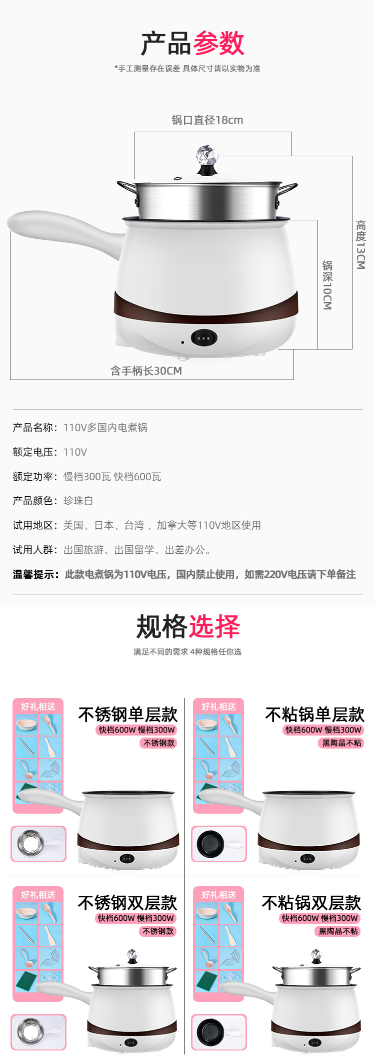 Мини-рисоварка 110 В, электрическая кухонная машина, однослойная/двухслойная, многофункциональная электрическая рисоварка