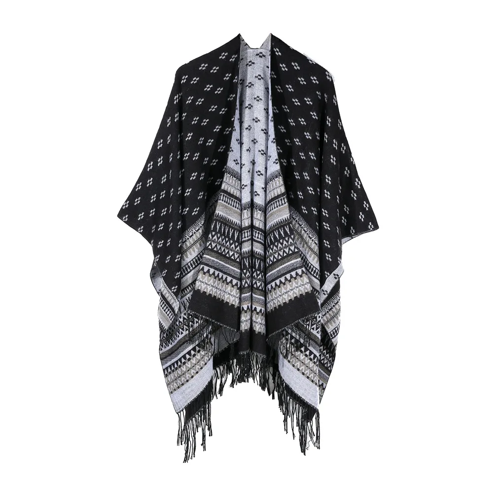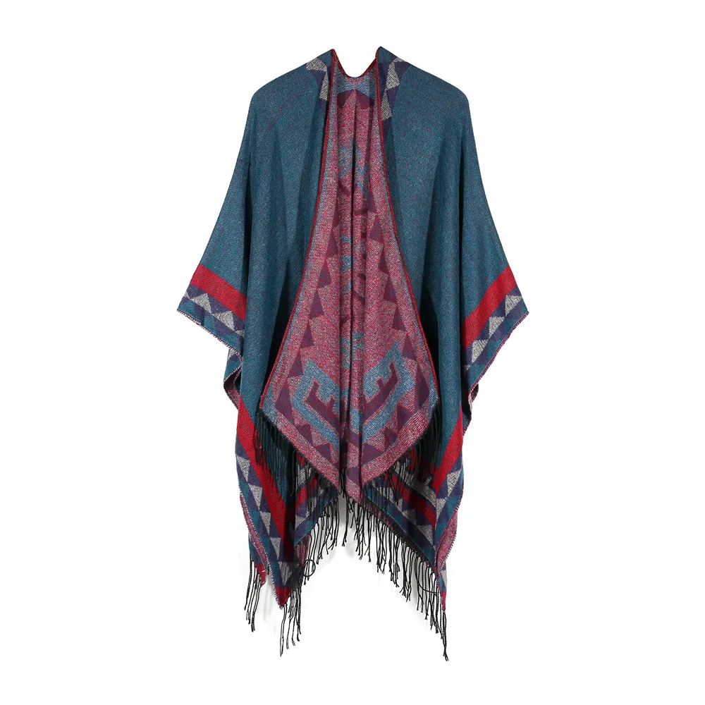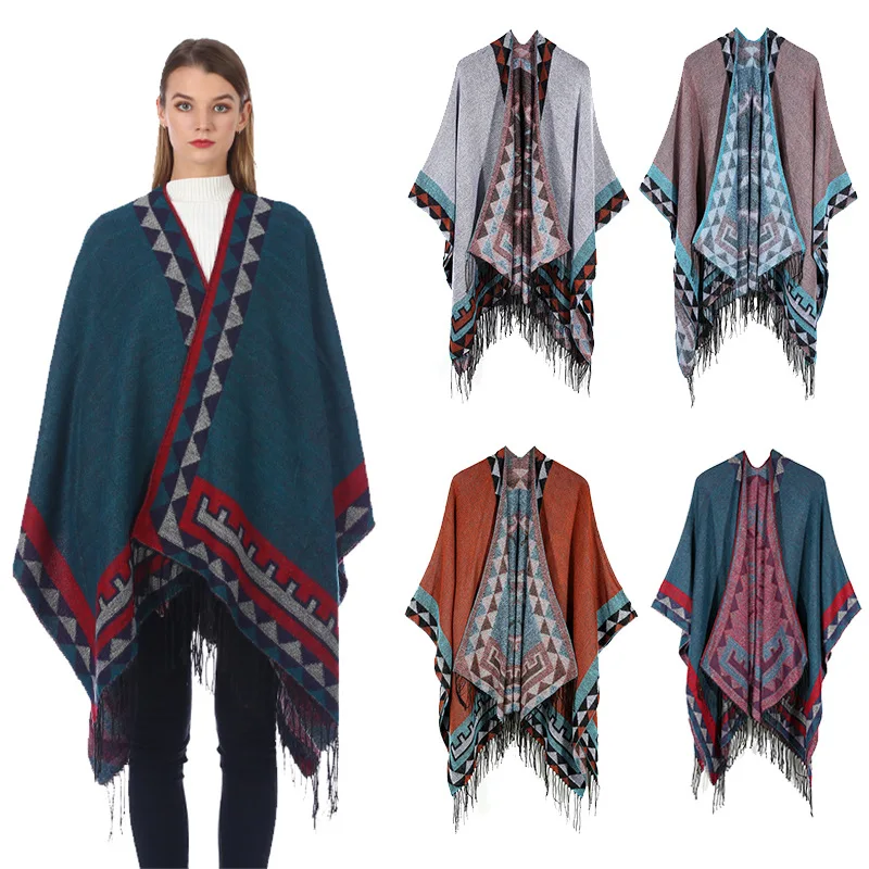 Женская зимняя обувь для женщин треугольная шаль пончо Свободный кардиган пончо, плащ с капюшоном, открытой передней свитер пальто теплое одеяло шарф