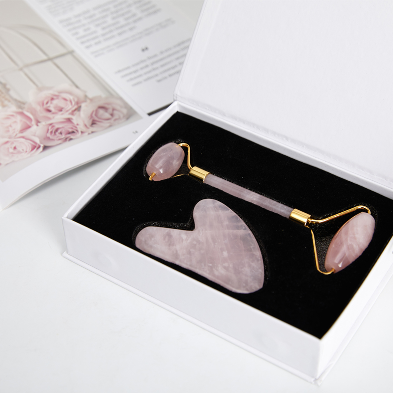 Розовый КВАРЦЕВЫЙ нефритовый роликовый массажер для похудения лица, лифтинг для лица, натуральный Нефритовый камень, массажный ролик для лица, уход за кожей, косметический набор, коробка