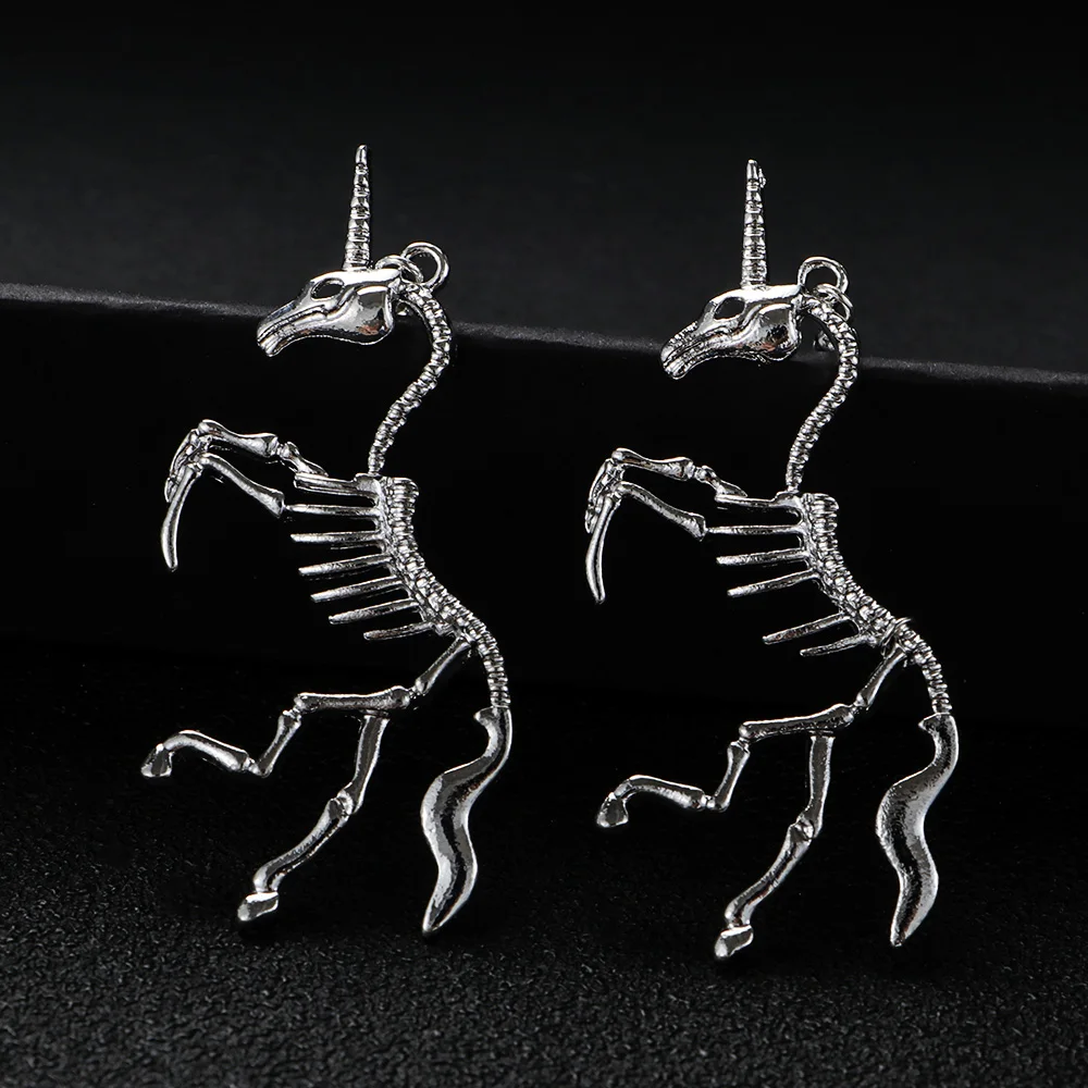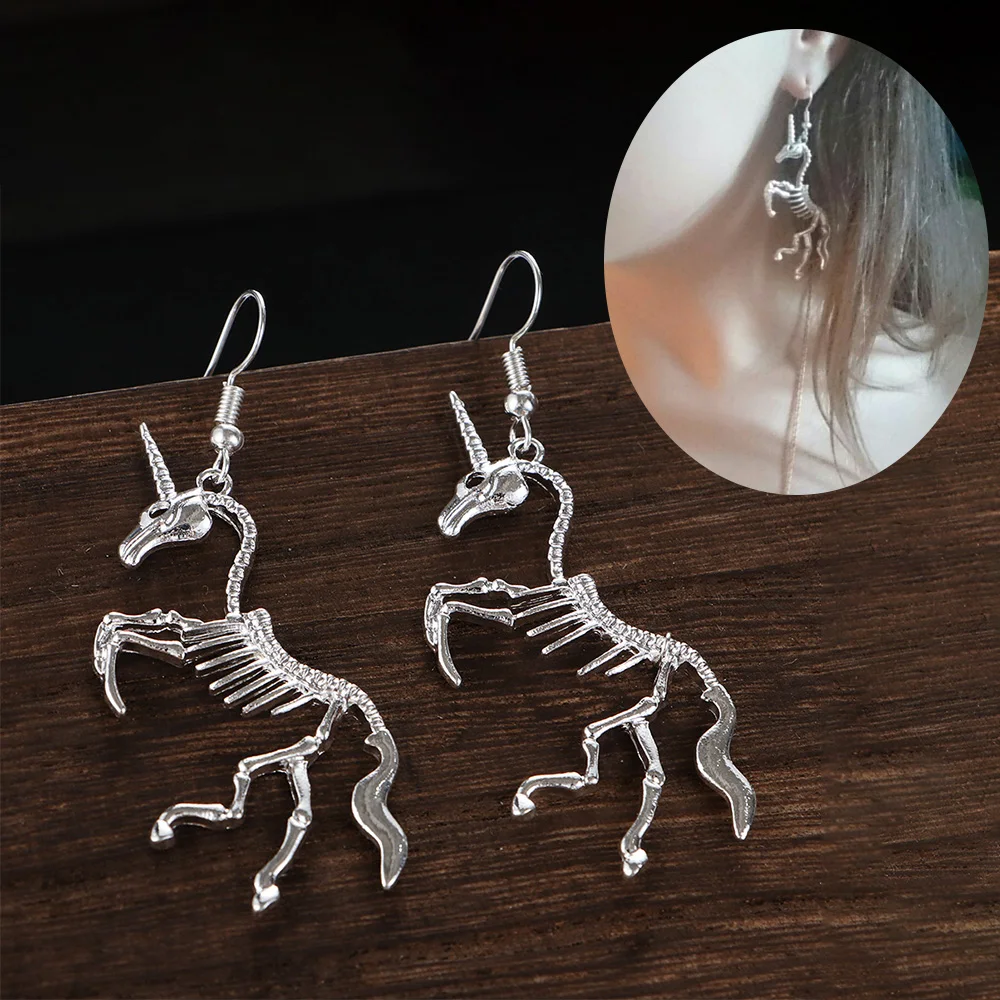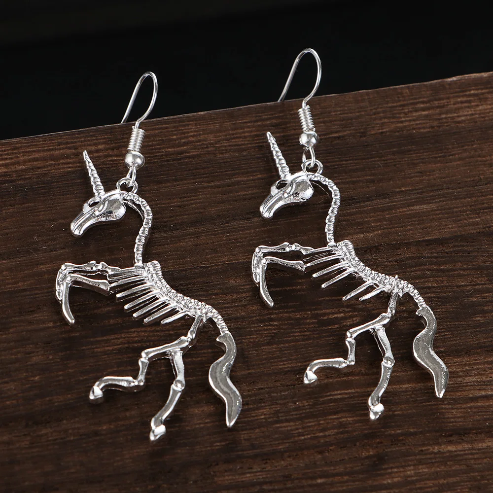 1 пара, новинка, серьги в стиле панк, единорог, лошадь, кулон, скелет, висячие серьги, оптовая продажа, модные ювелирные изделия для женщин, вечерние