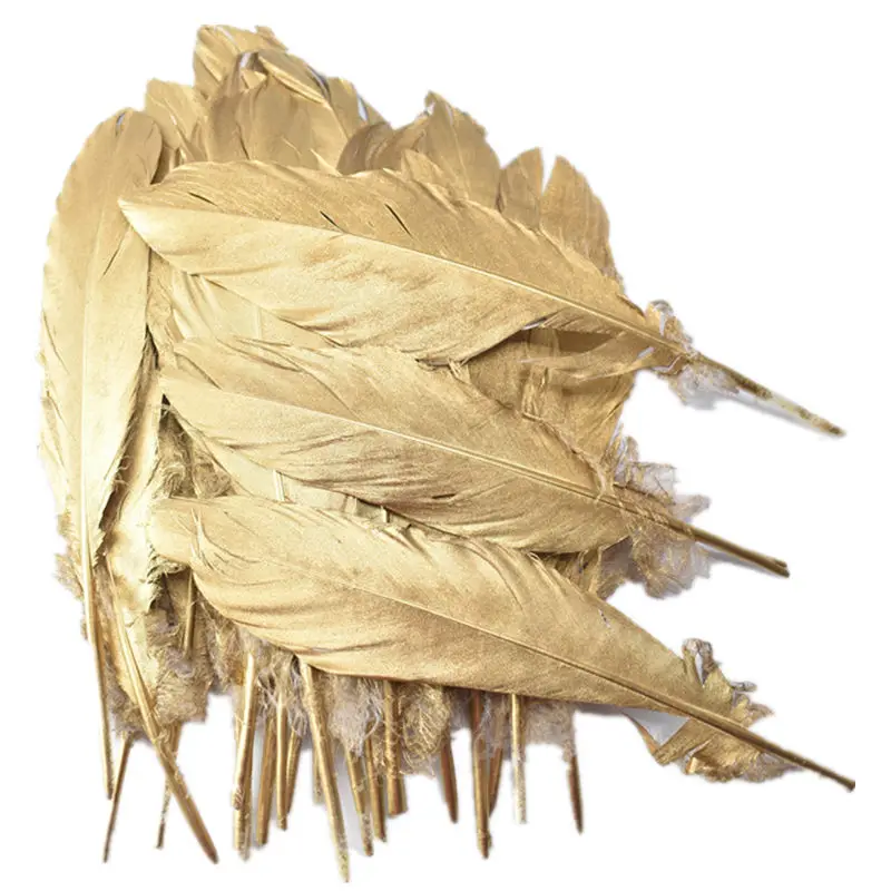 Оптовая продажа 10 шт золотые гусиные/утки/турецкие перья для Свадебные украшения, аксессуары, натуральные перья DIY для дома