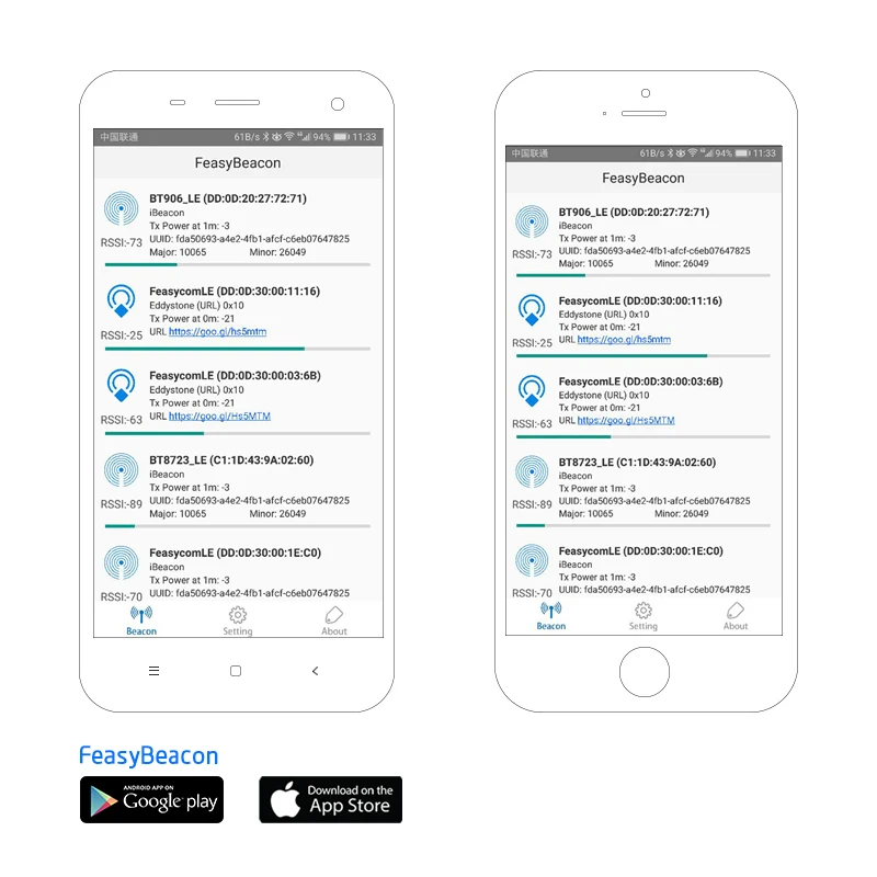 ● С доступным бесплатным iOS и Android FeasyBeacon SDK пользователи легко разрабатывают свои собственные приложения, такие как вещание, близость маркетинга, внутреннее местоположение, Отслеживание активов, и в ближайшее время.