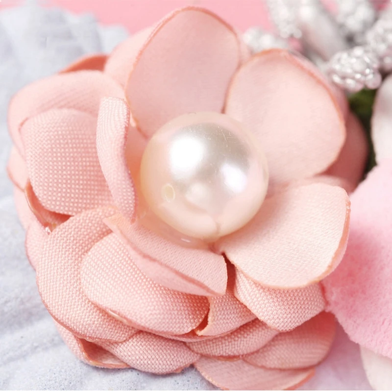 Детский ободок с цветами, тонкие нейлоновые аксессуары для волос ручной работы с жемчужинами для маленьких принцесс, милые повязки на голову для детей