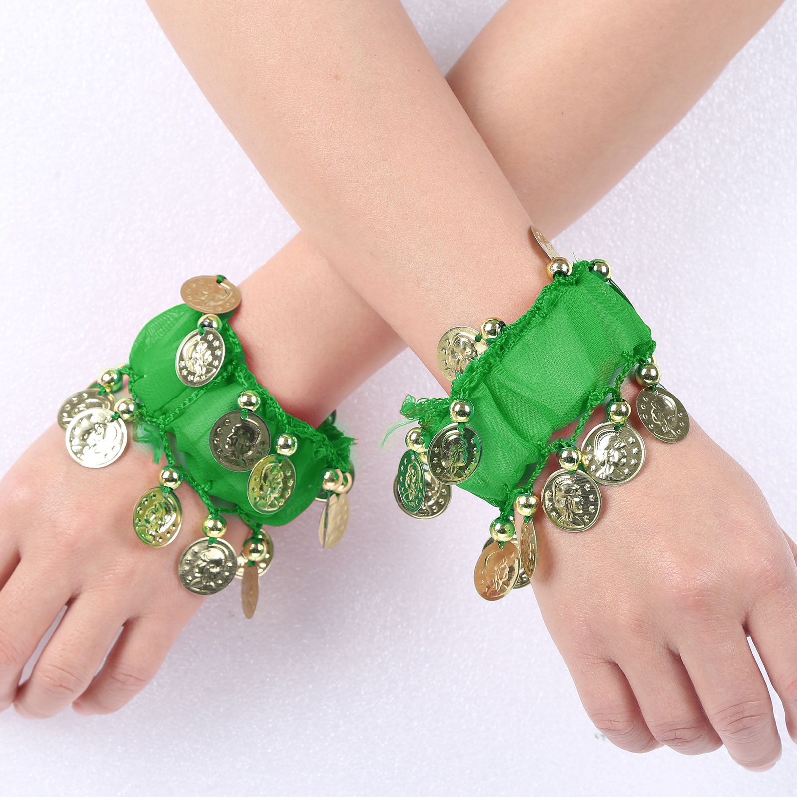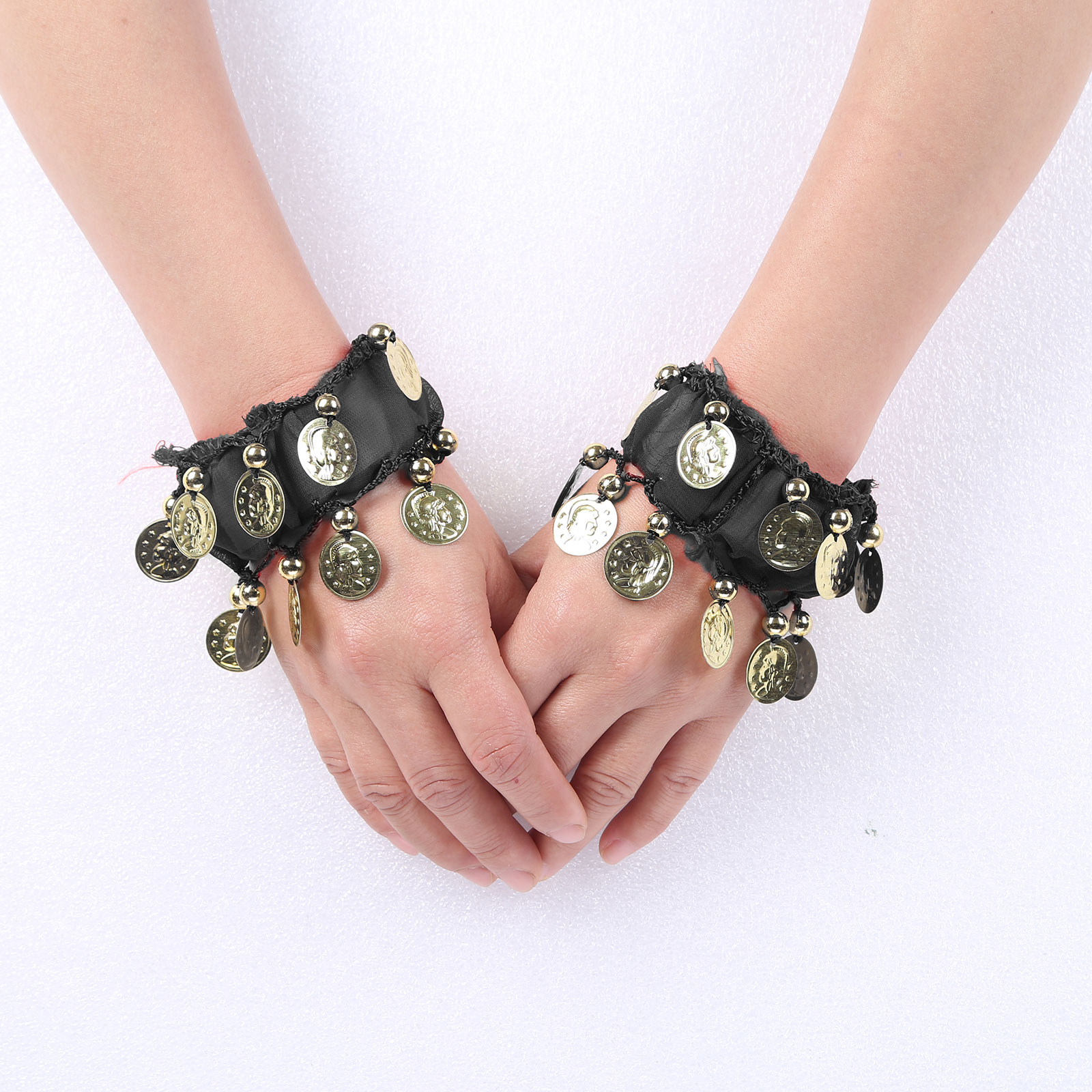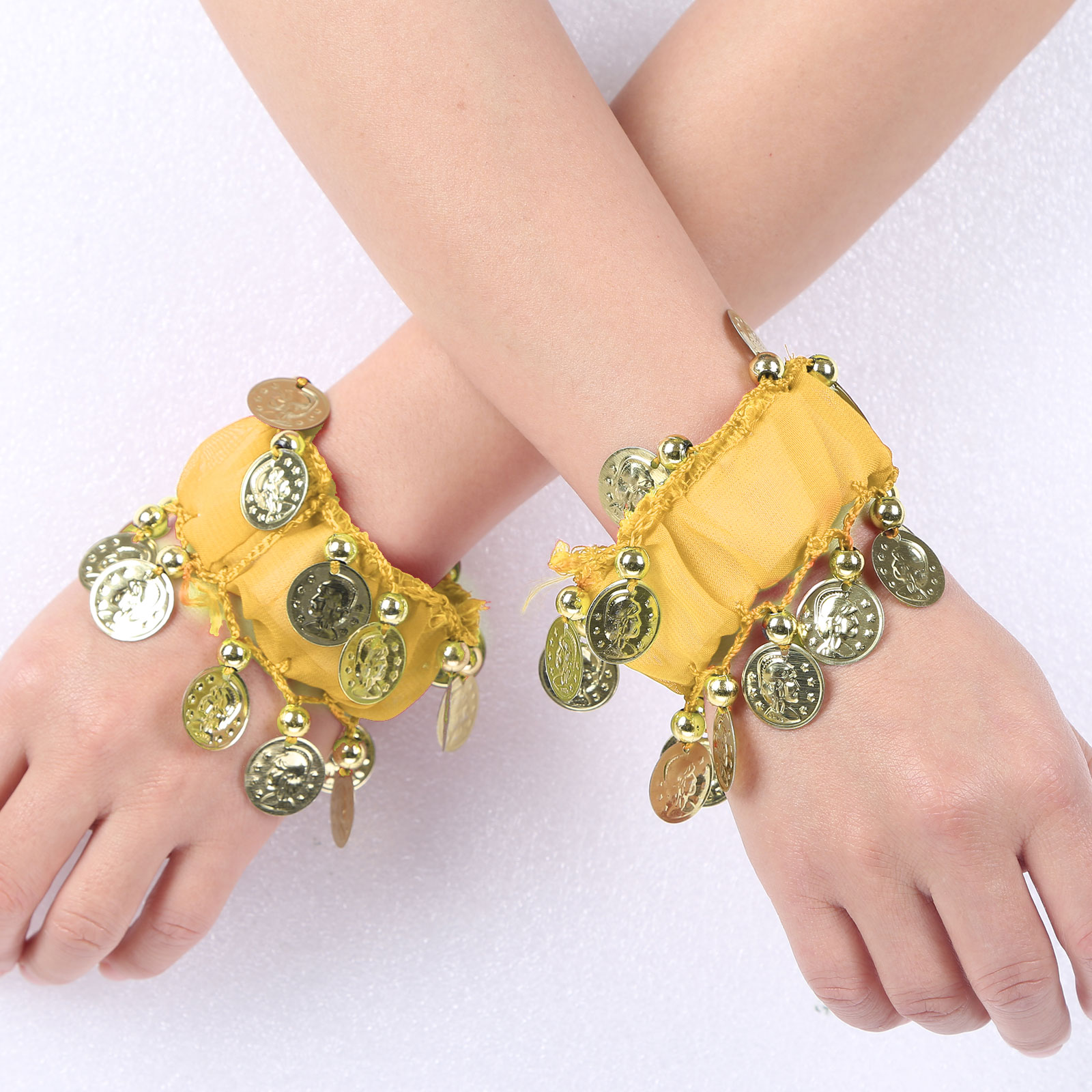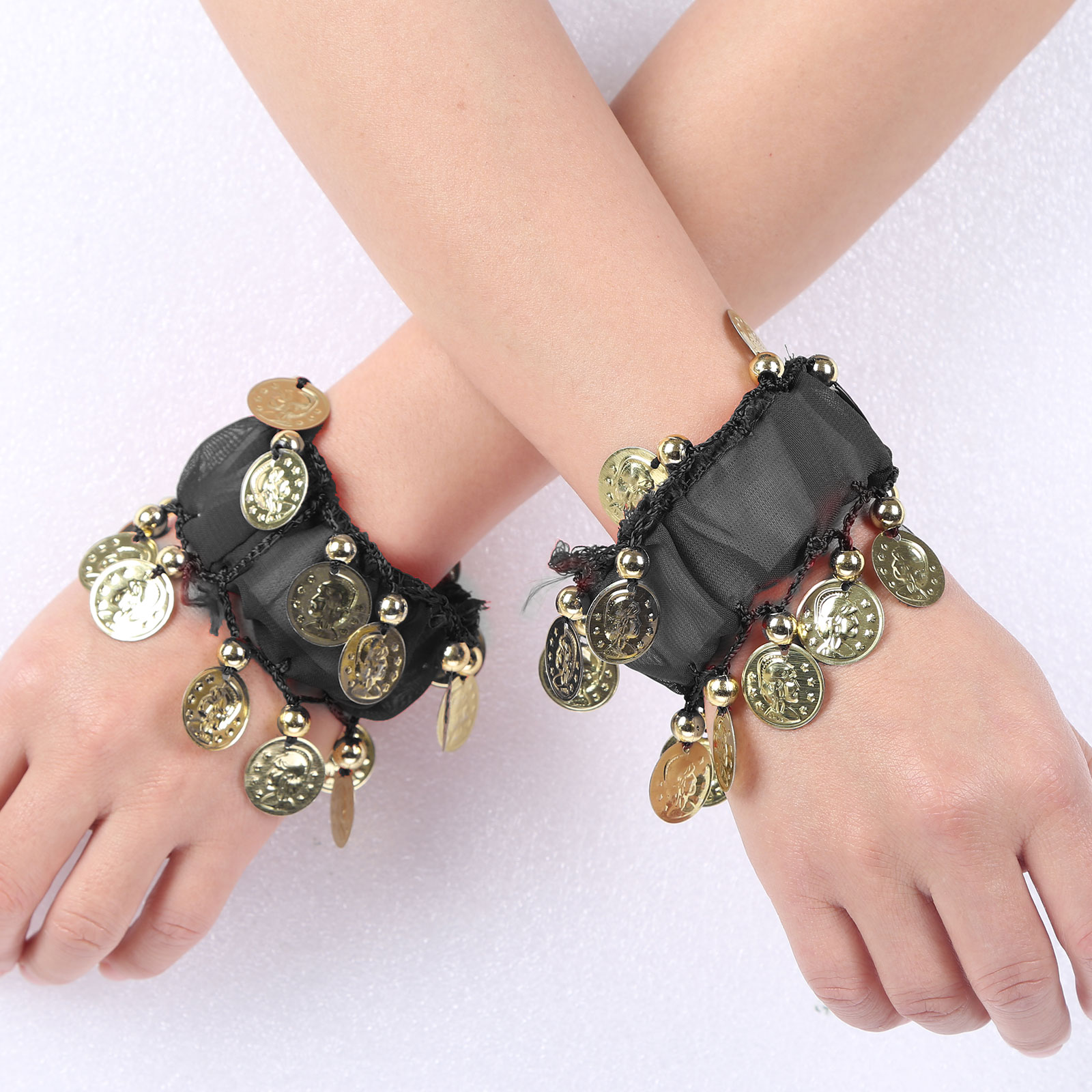 1 пара танец живота наручные манжеты лодыжки Браслеты шифон Золотая монета танец живота индийские ювелирные изделия в богемном стиле с монетами, в стиле бохо красивый костюм аксессуар
