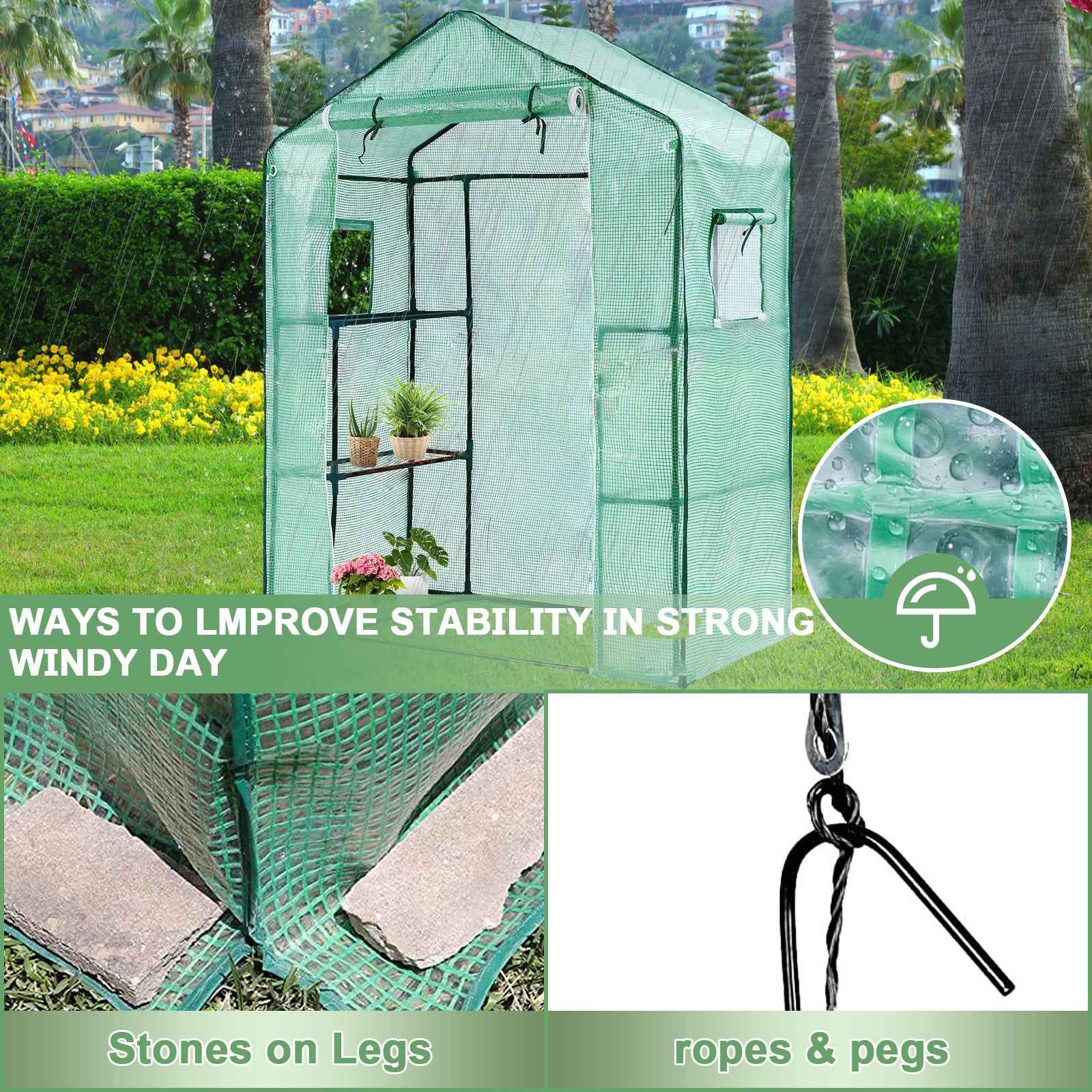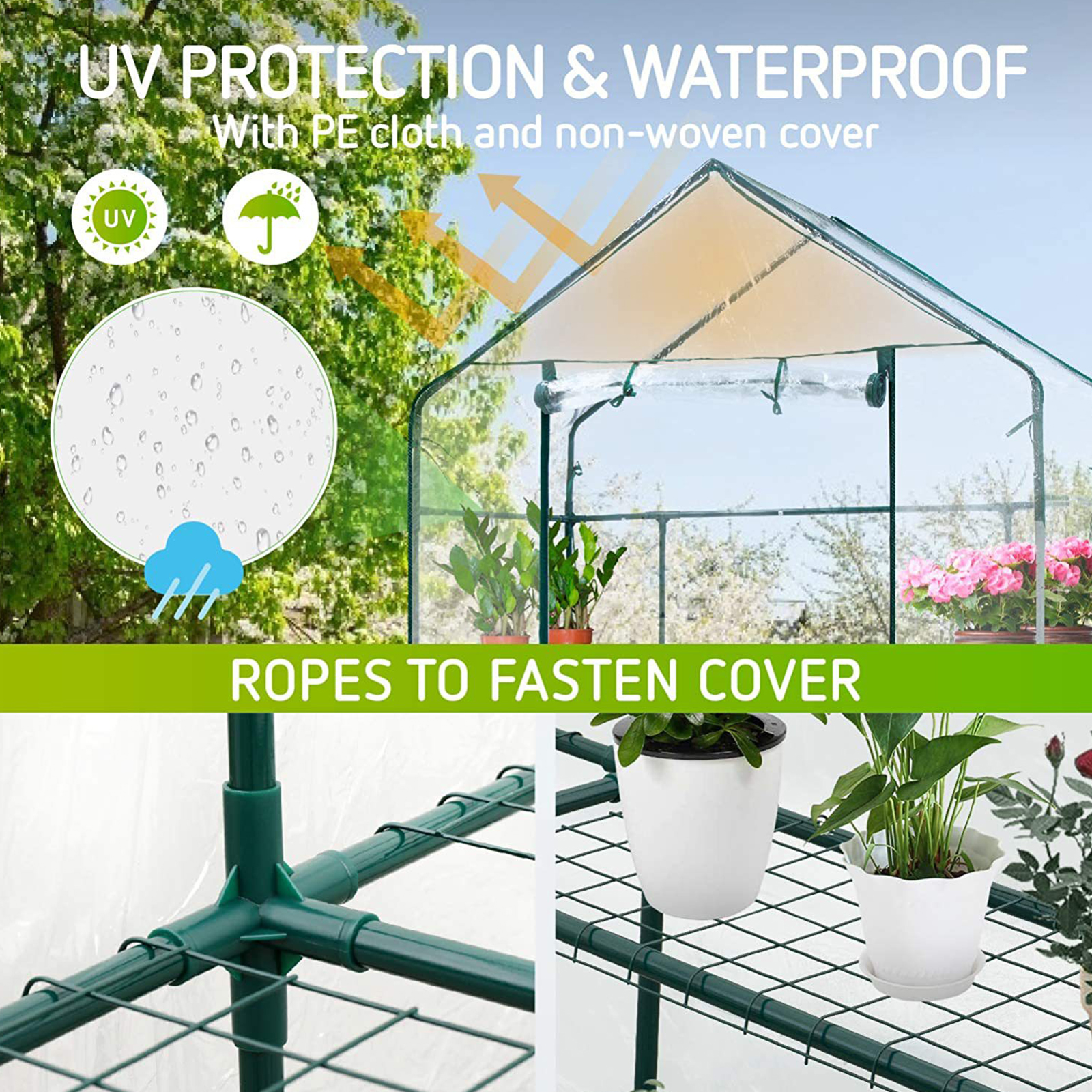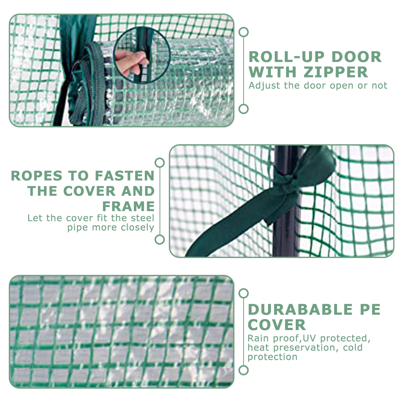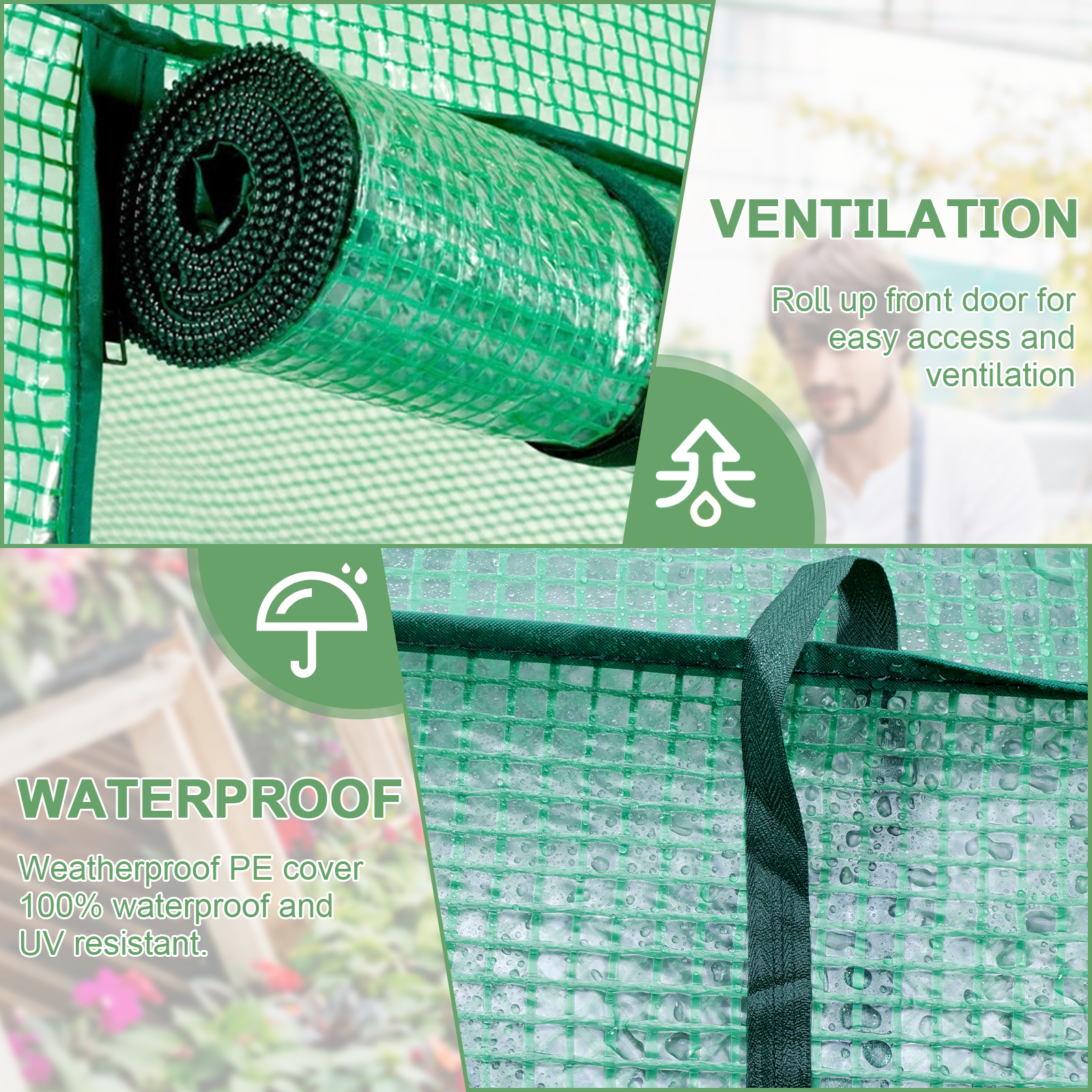 1. Замена теплицы: Усиленная сетчатая крышка является идеальной заменой для теплиц H195cm x W143cm x D73cm, мы рекомендуем измерить ваш каркас теплицы перед покупкой, чтобы убедиться, что крышка является правильным размером.