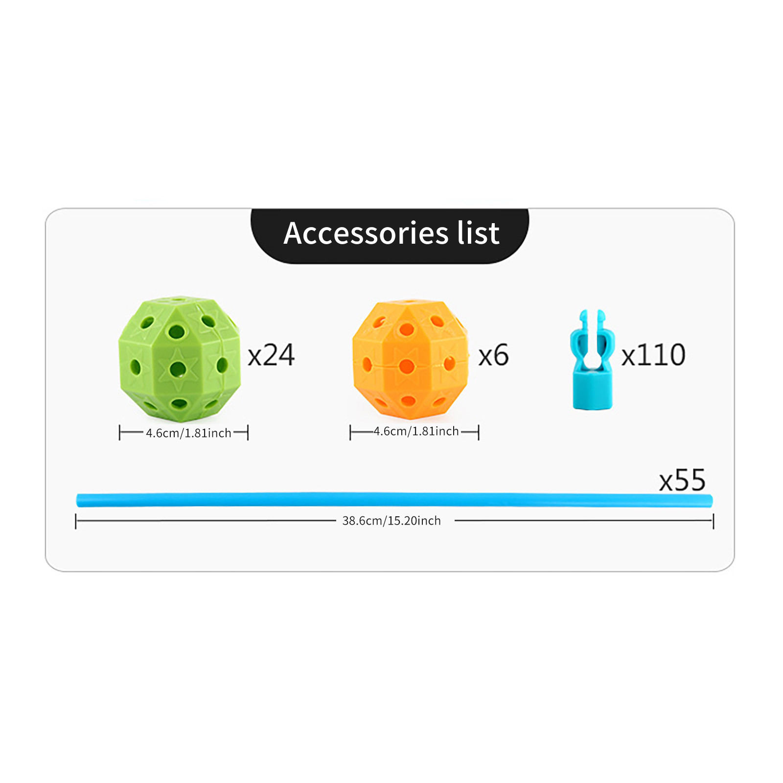 30 × шары 55 × палочки 110 x Соединительная пряжкаDirect 7 day delivery store этот магазин афериста и жуликов не ведитесь на дешёвые товары, обманут и деньги не вернули.... Читать отзыв полностью...