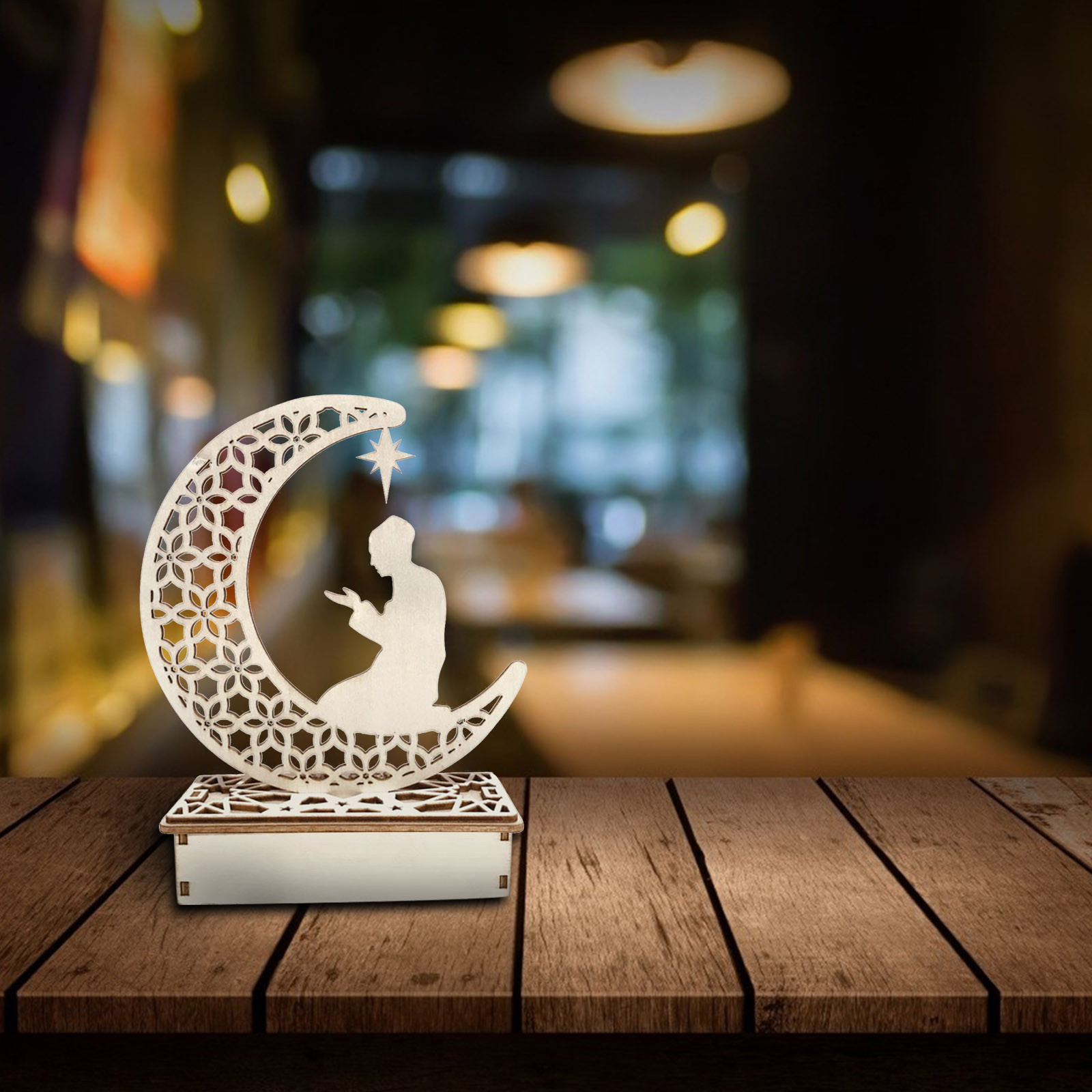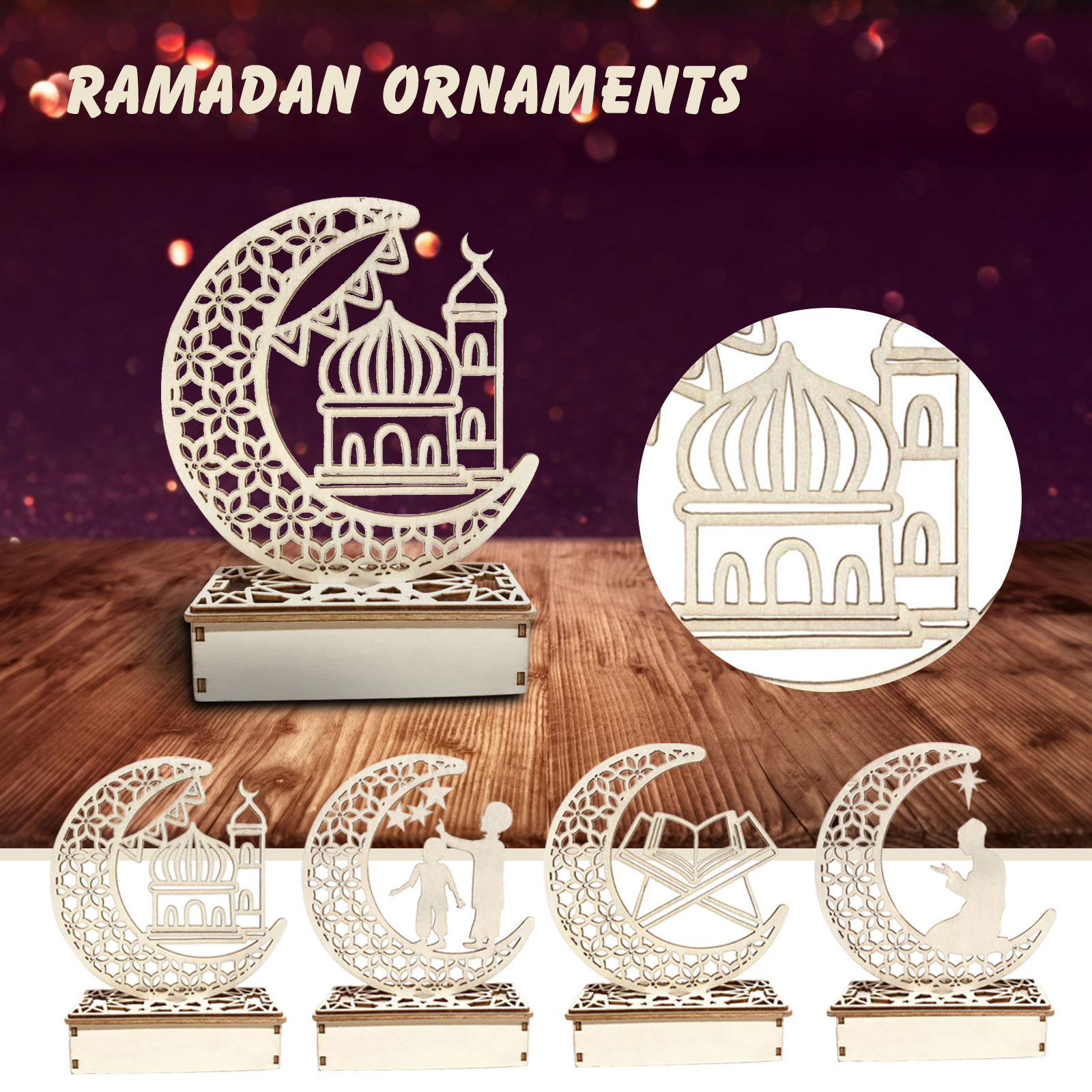 4. Элегантный дизайн: дизайн деревянных украшений имеет выдолбленный мусульманский Стиль. Это традиционный фестиваль Eid al Fitr. Привлекательный Внешний вид, может быть хорошим украшением дома и фестиваля.