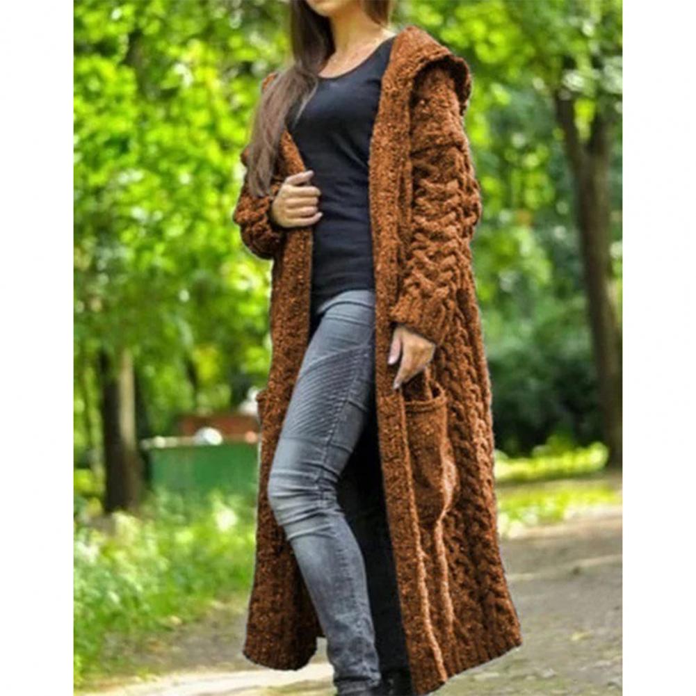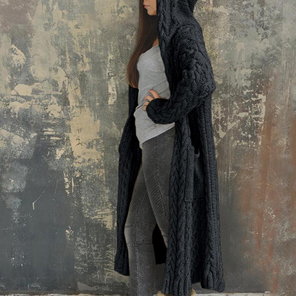 Толстый теплый кардиган для женщин 2020 зима с капюшоном оверсайз Свитера вязаные пальто свободные длинные пальто трикотажные