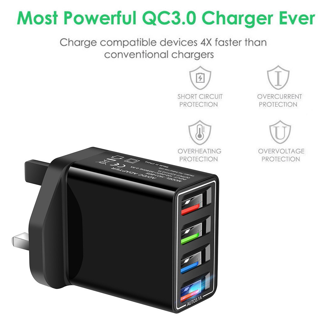 Быстрый 4 порта Зарядка QC 3,0 usb-хаб настенное зарядное устройство 3.5A адаптер питания штепсельная вилка Великобритании