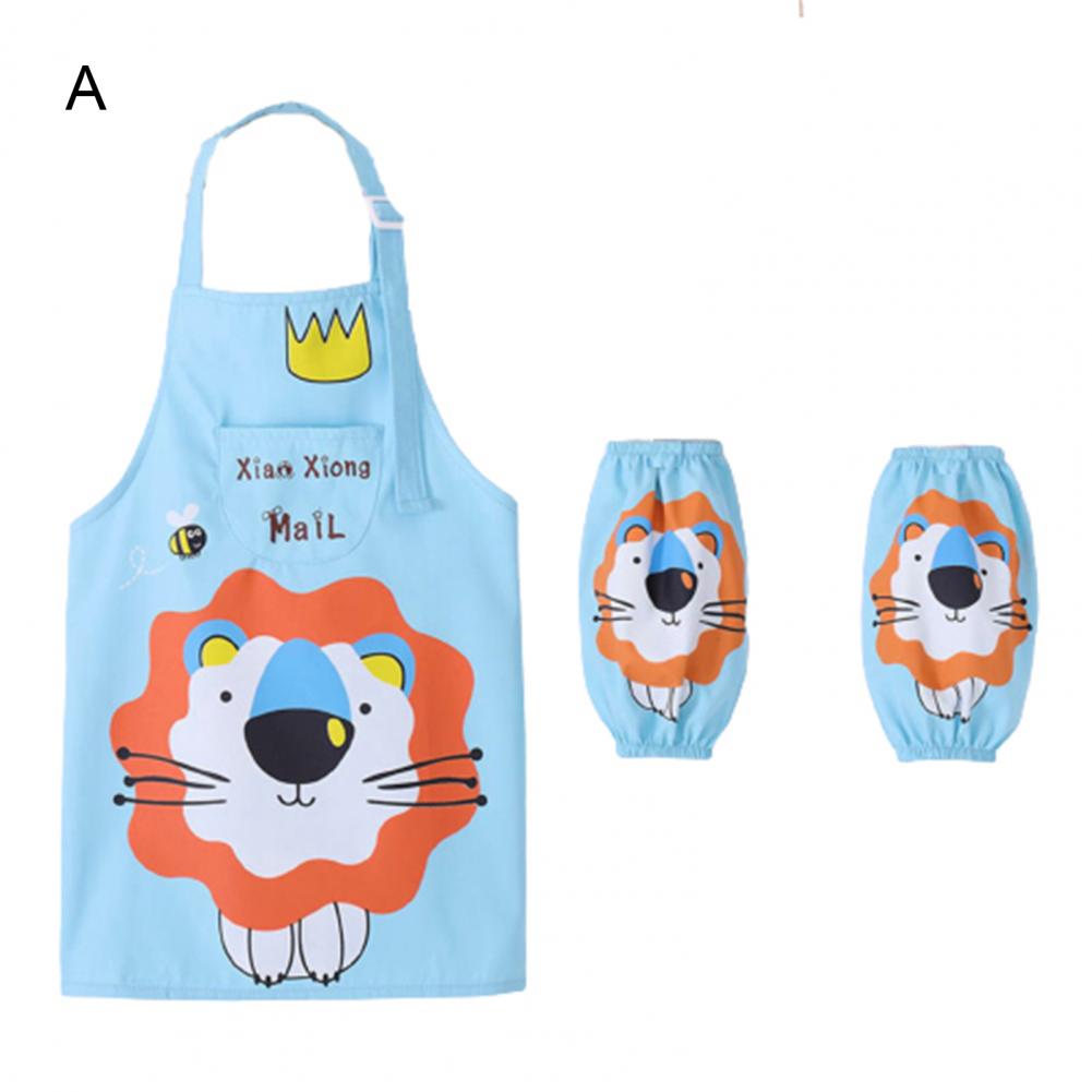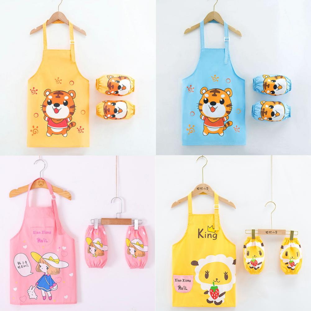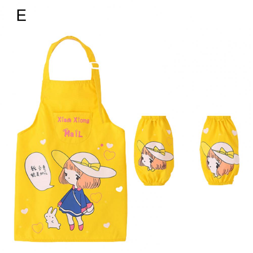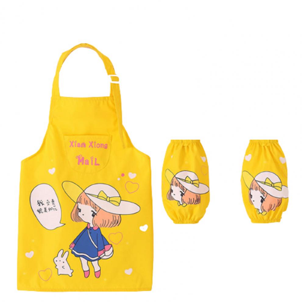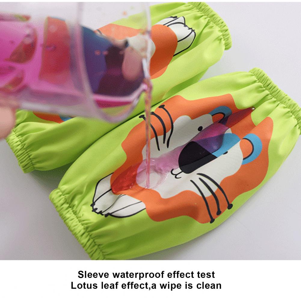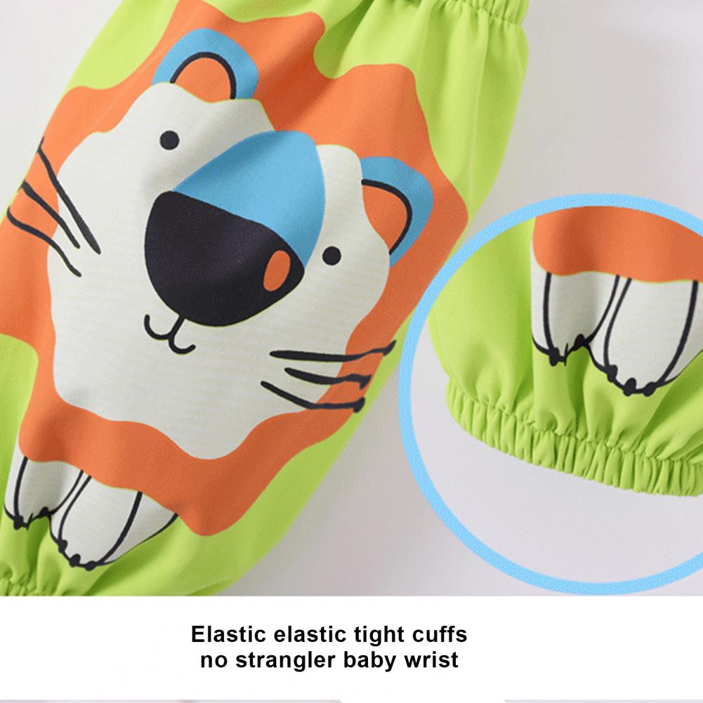 Комплект с рукавами-фартуками с мультипликационным рисунком и ярким цветом выглядит мило, очаровательно и легко привлекает внимание ребенка.