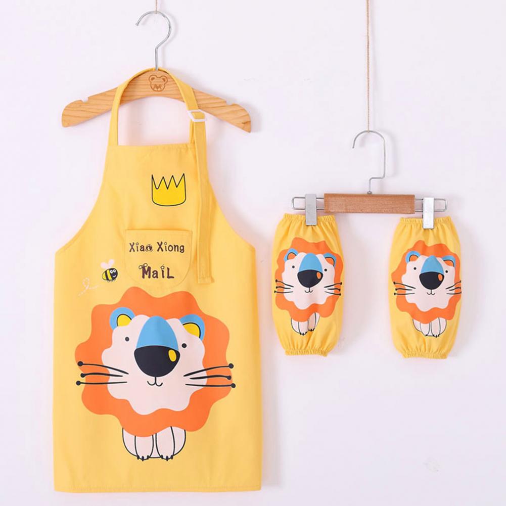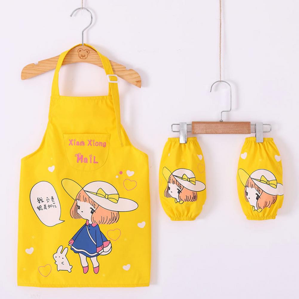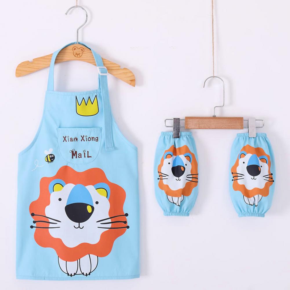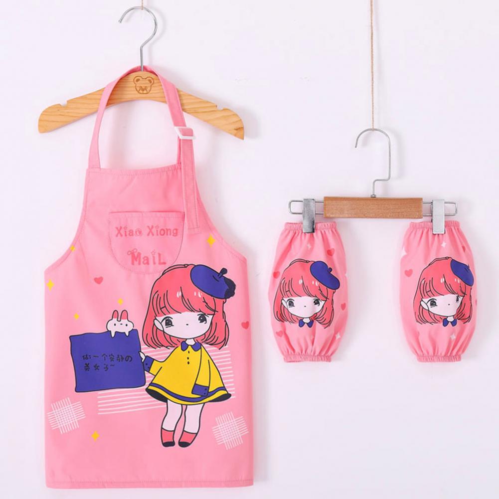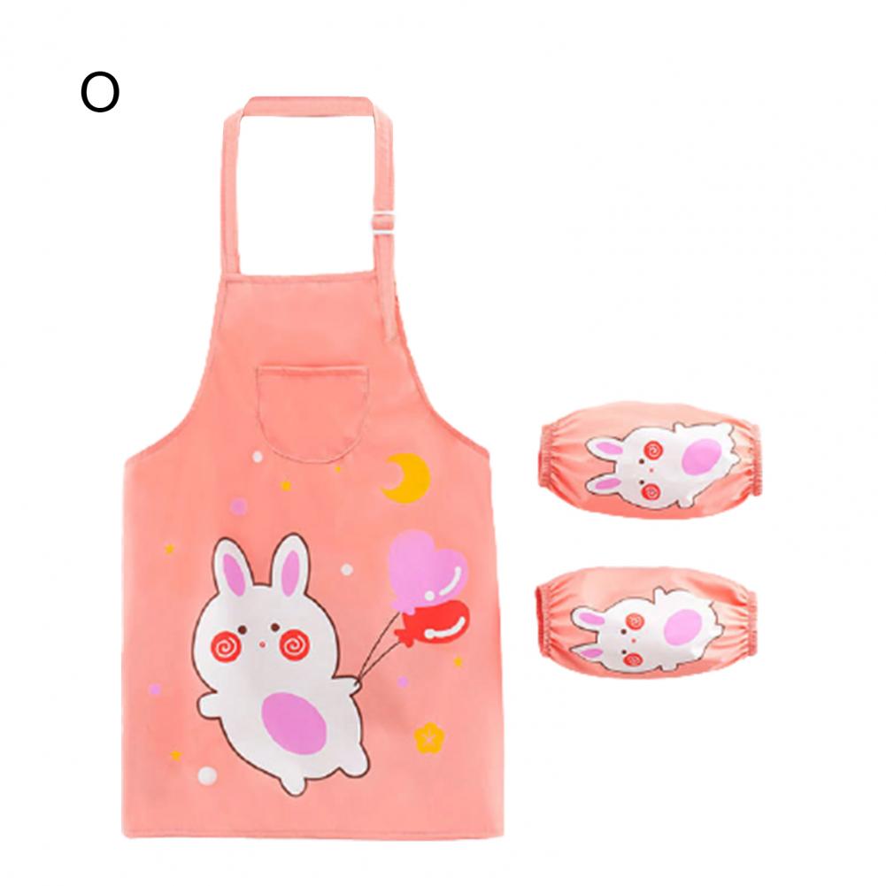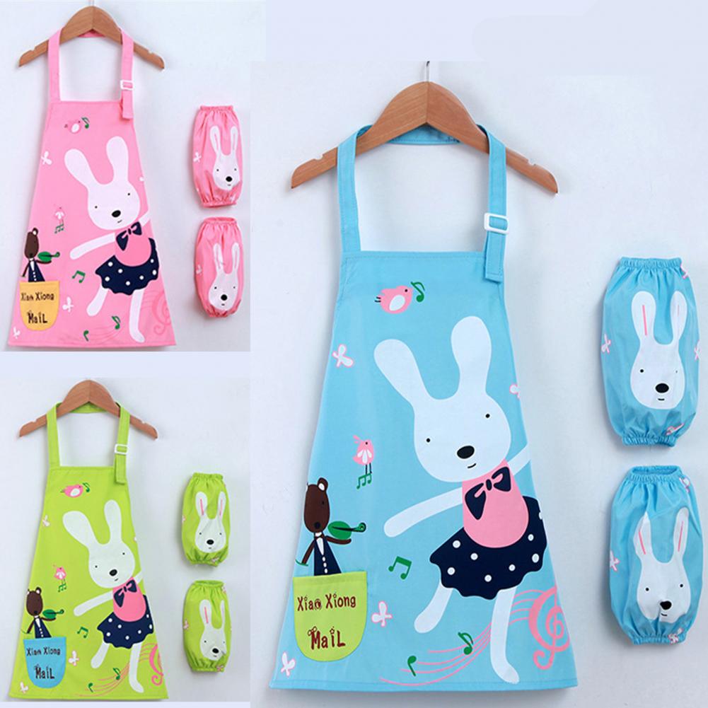 Комплект с рукавами-фартуками с мультипликационным рисунком и ярким цветом выглядит мило, очаровательно и легко привлекает внимание ребенка.