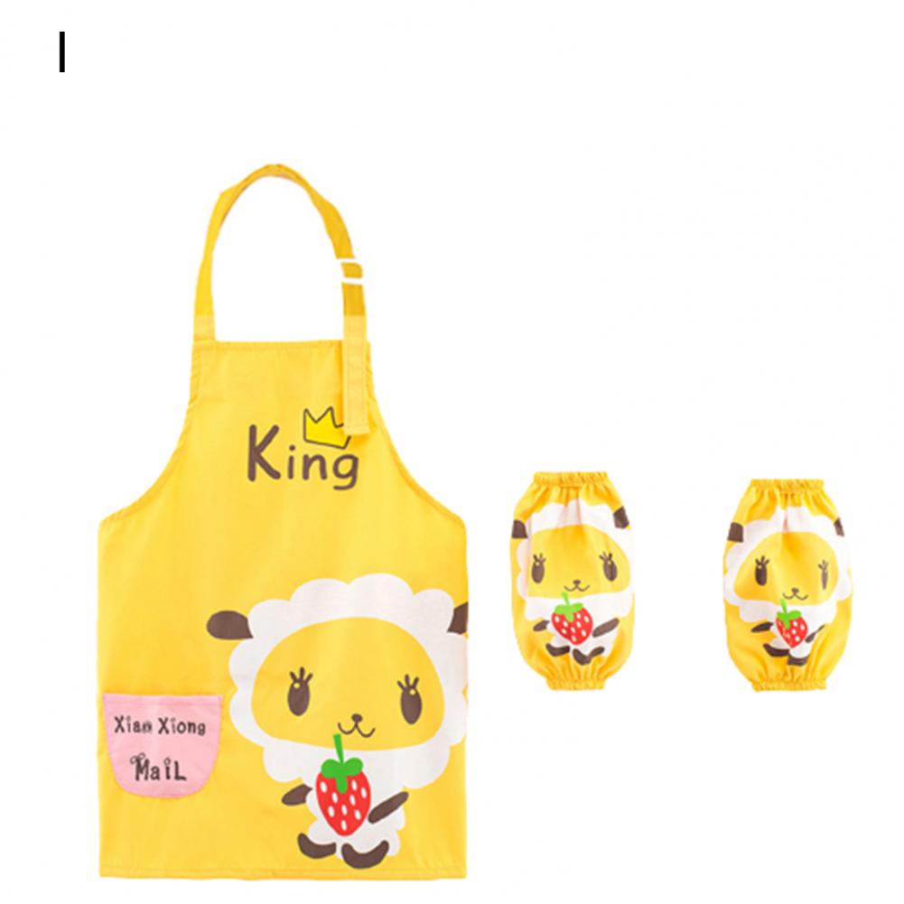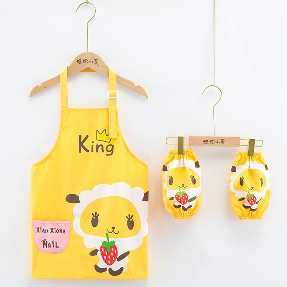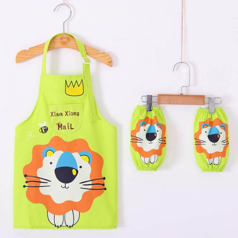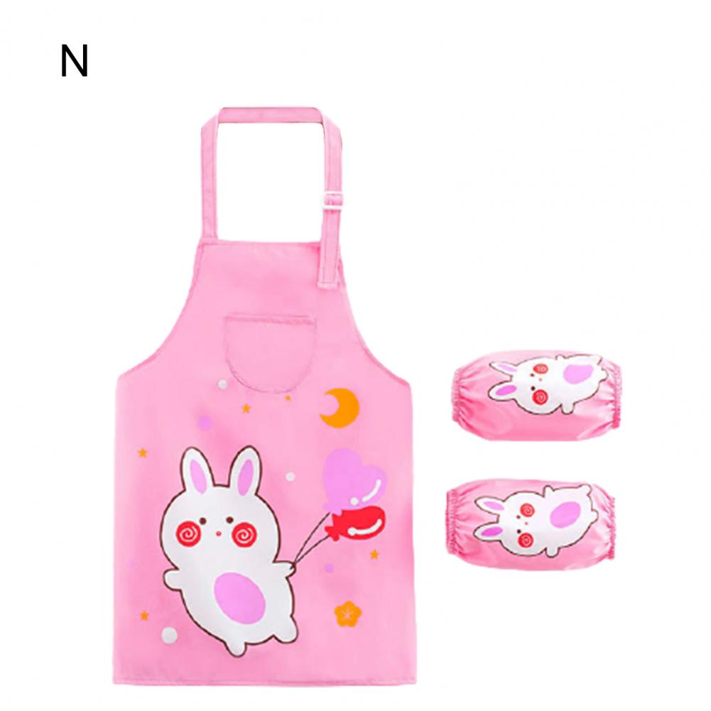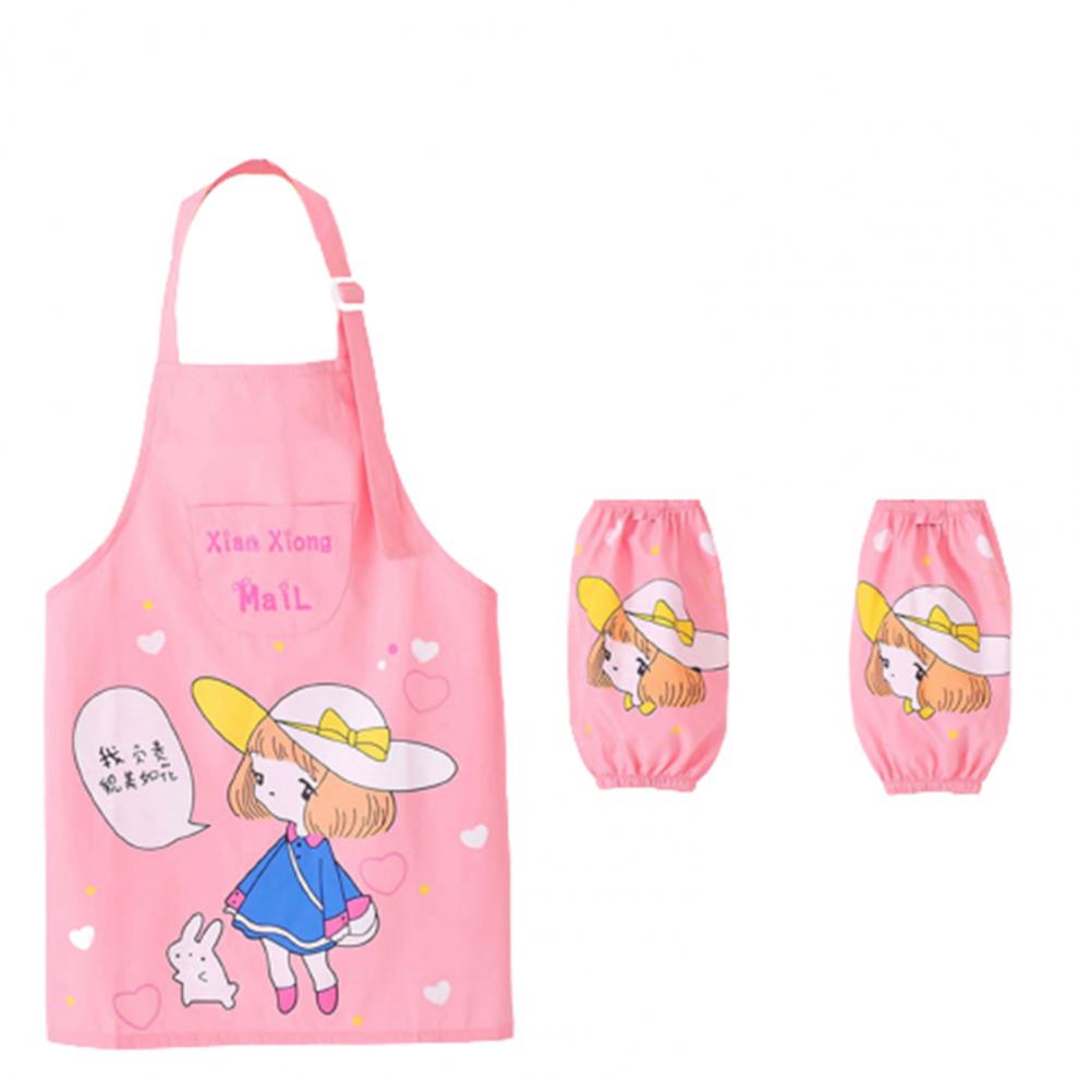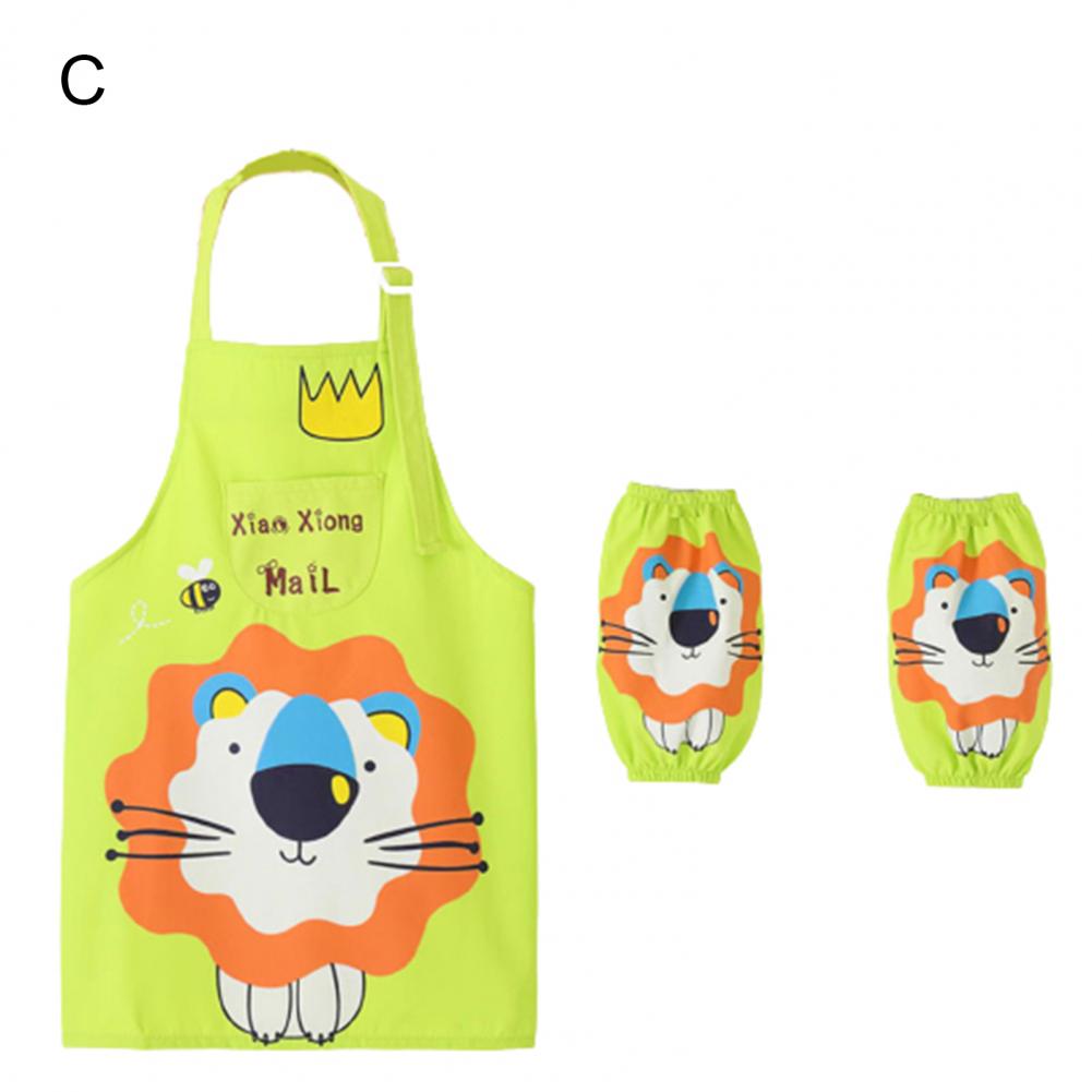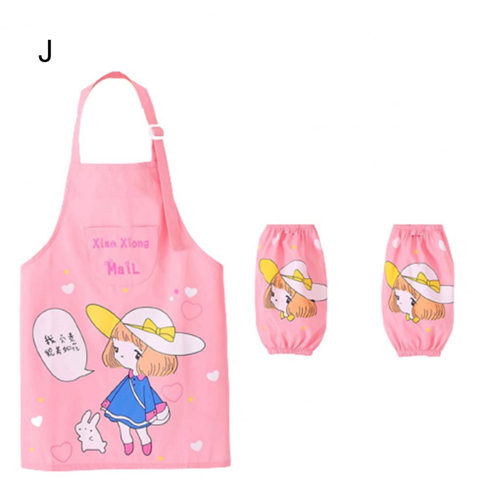 Комплект с рукавами-фартуками с мультипликационным рисунком и ярким цветом выглядит мило, очаровательно и легко привлекает внимание ребенка.
