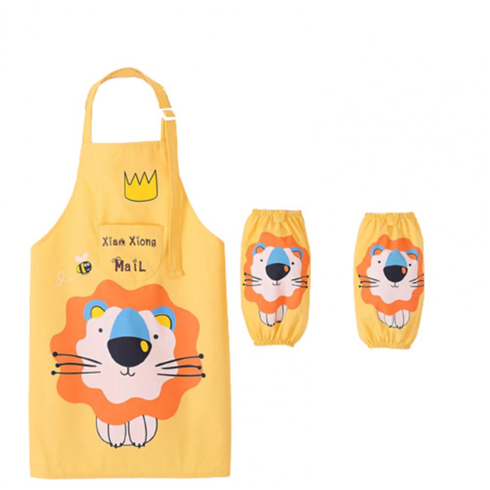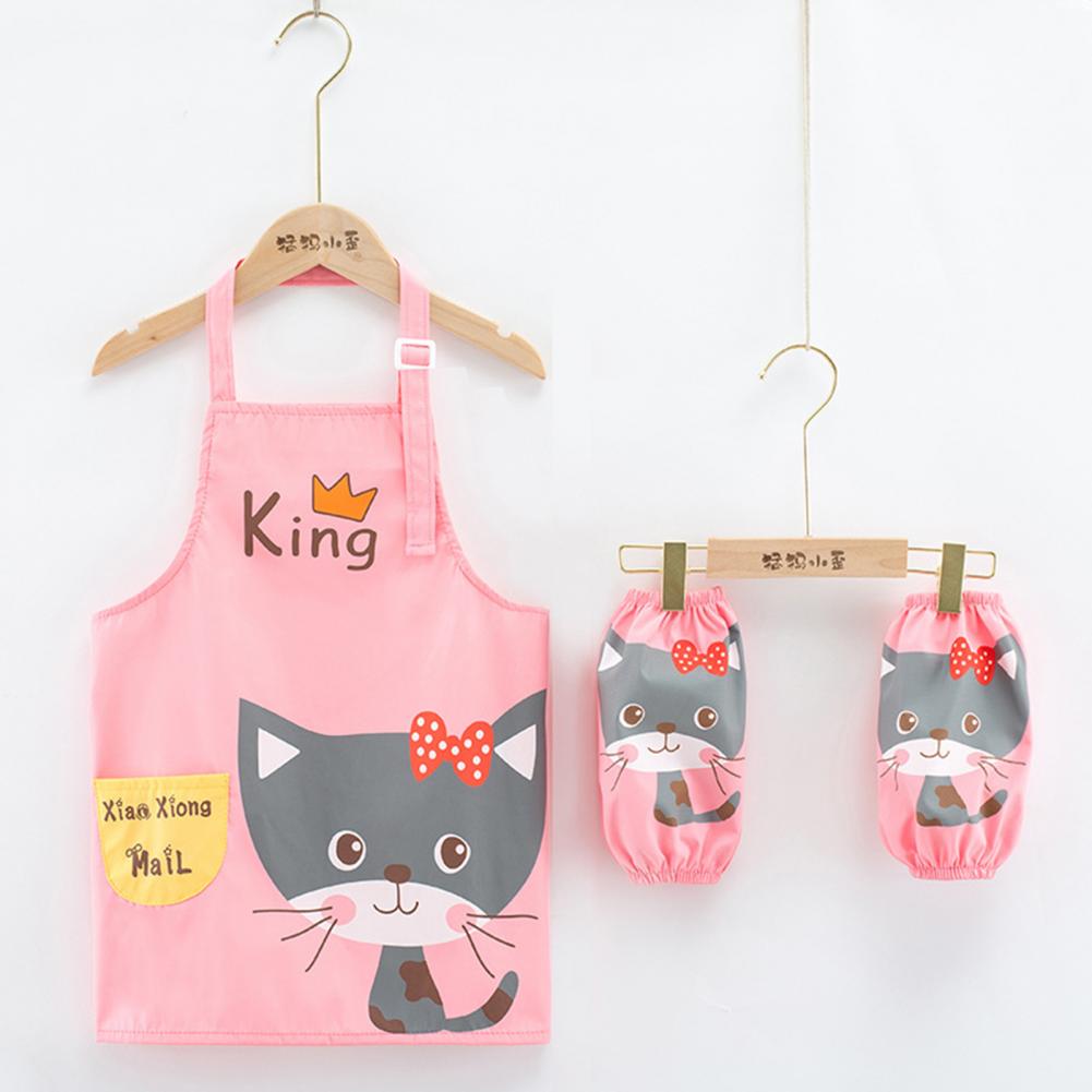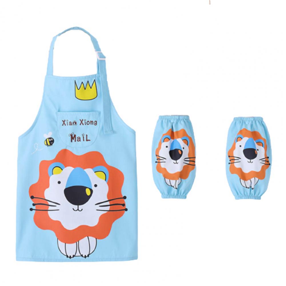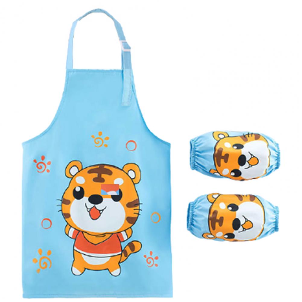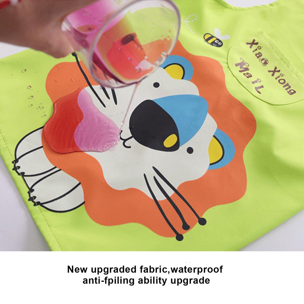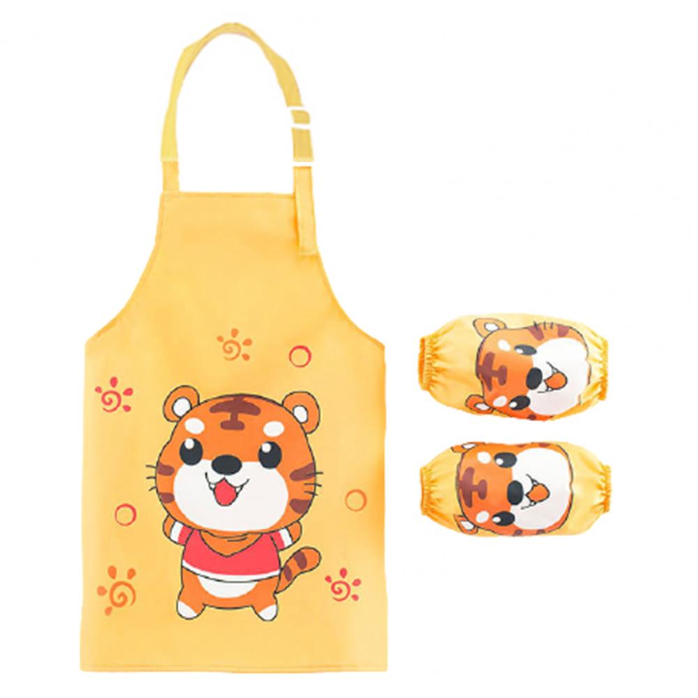 Комплект с рукавами-фартуками с мультипликационным рисунком и ярким цветом выглядит мило, очаровательно и легко привлекает внимание ребенка.