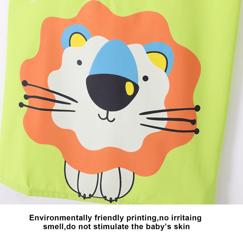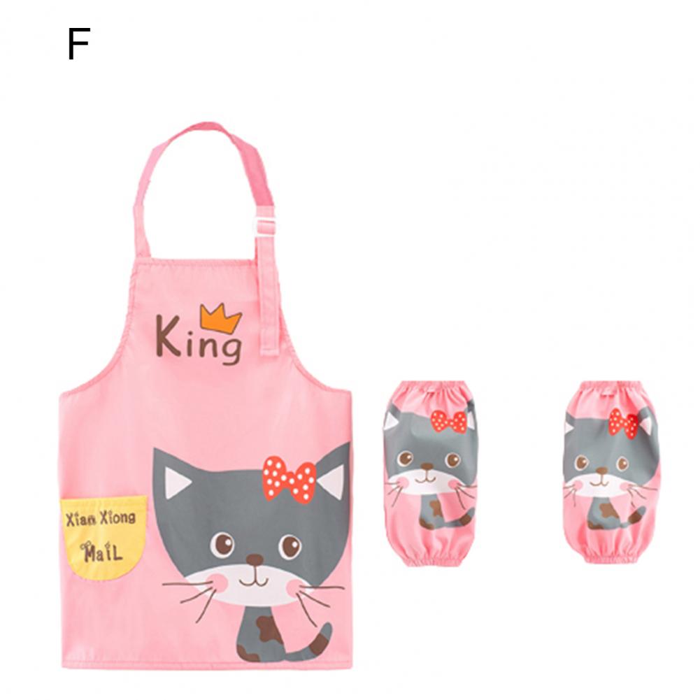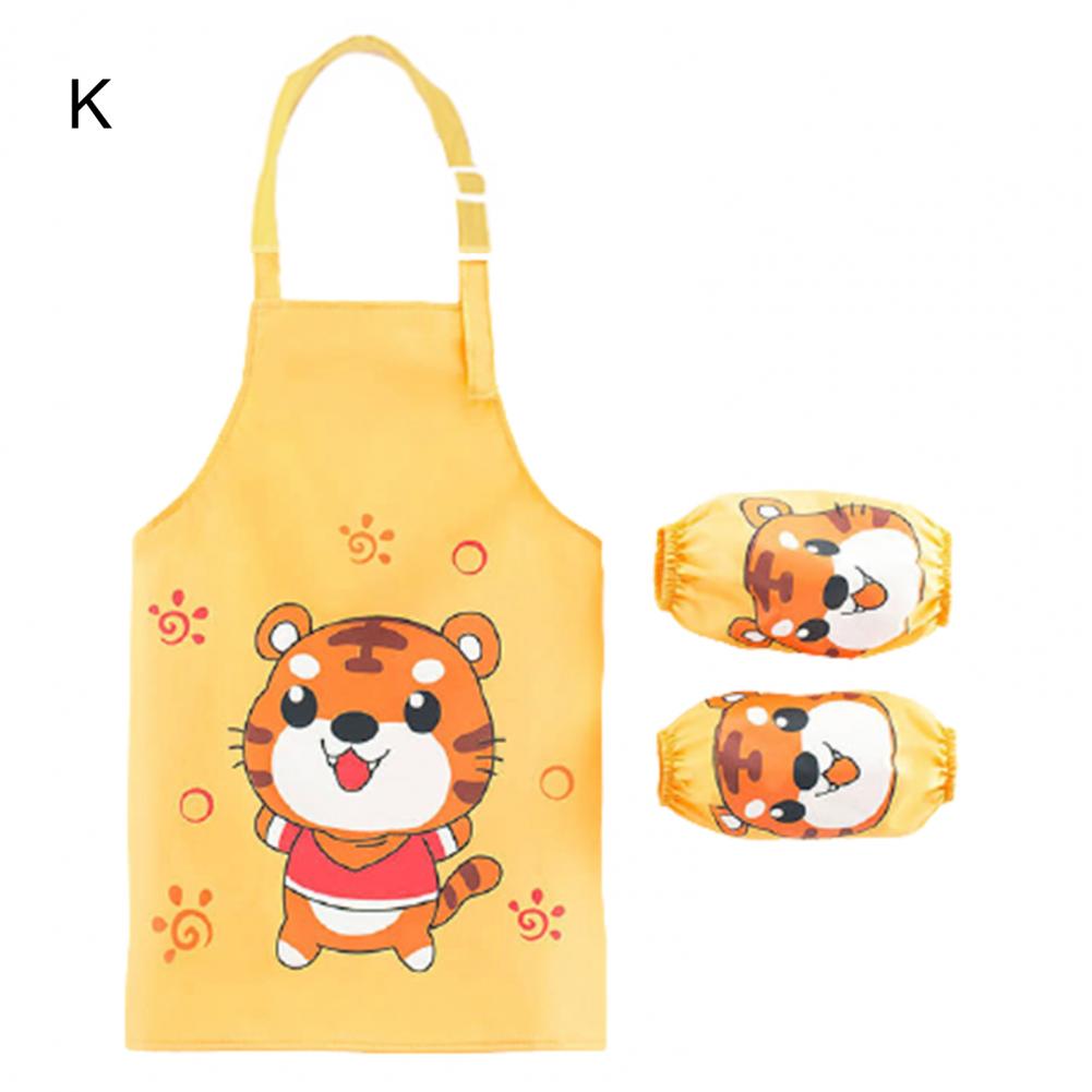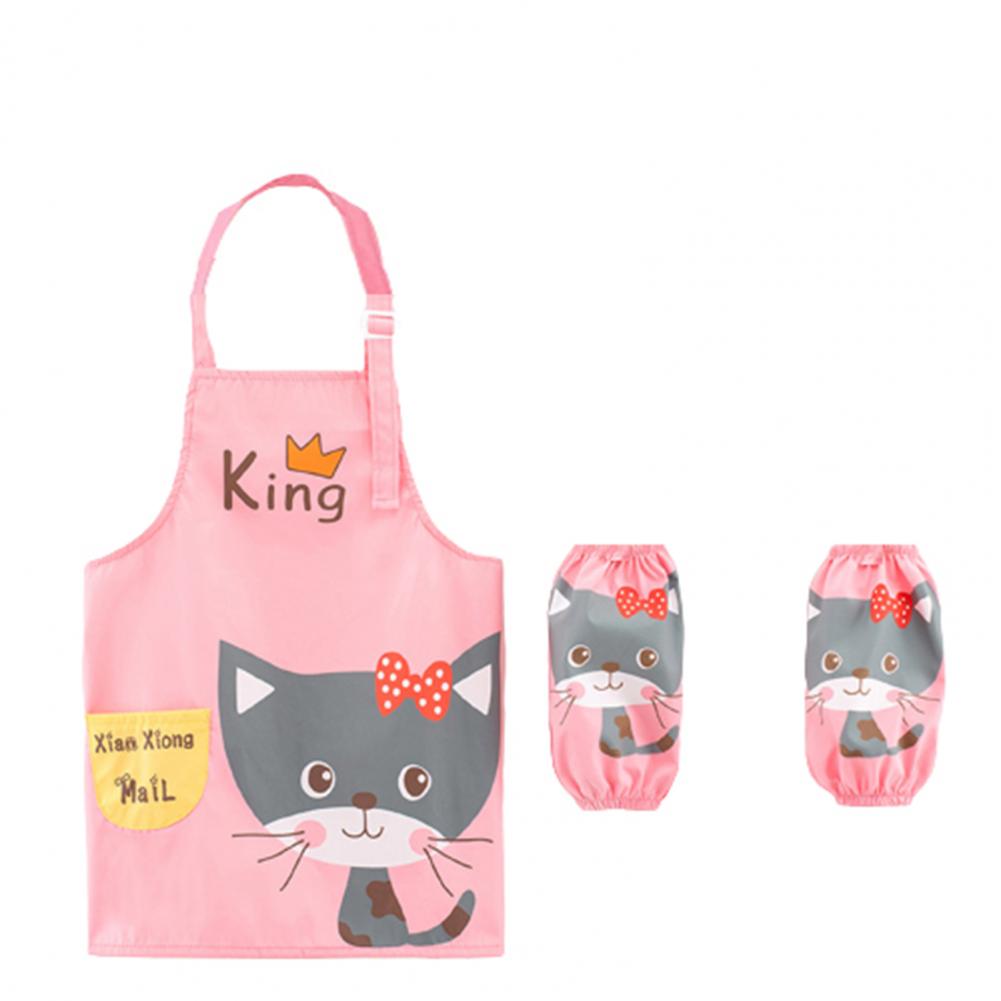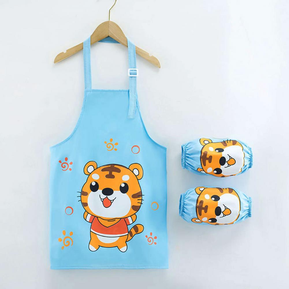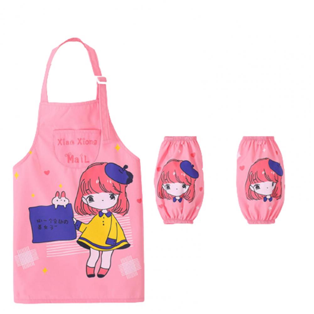 Комплект с рукавами-фартуками с мультипликационным рисунком и ярким цветом выглядит мило, очаровательно и легко привлекает внимание ребенка.