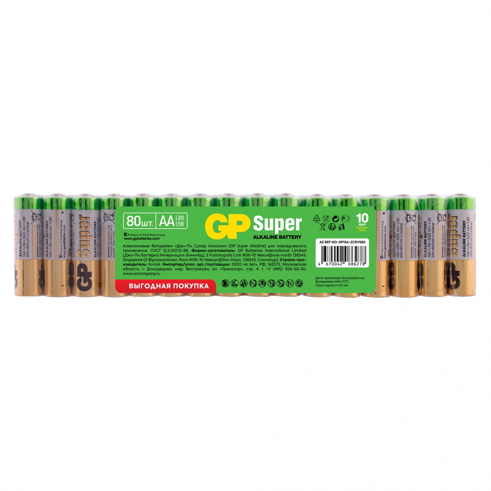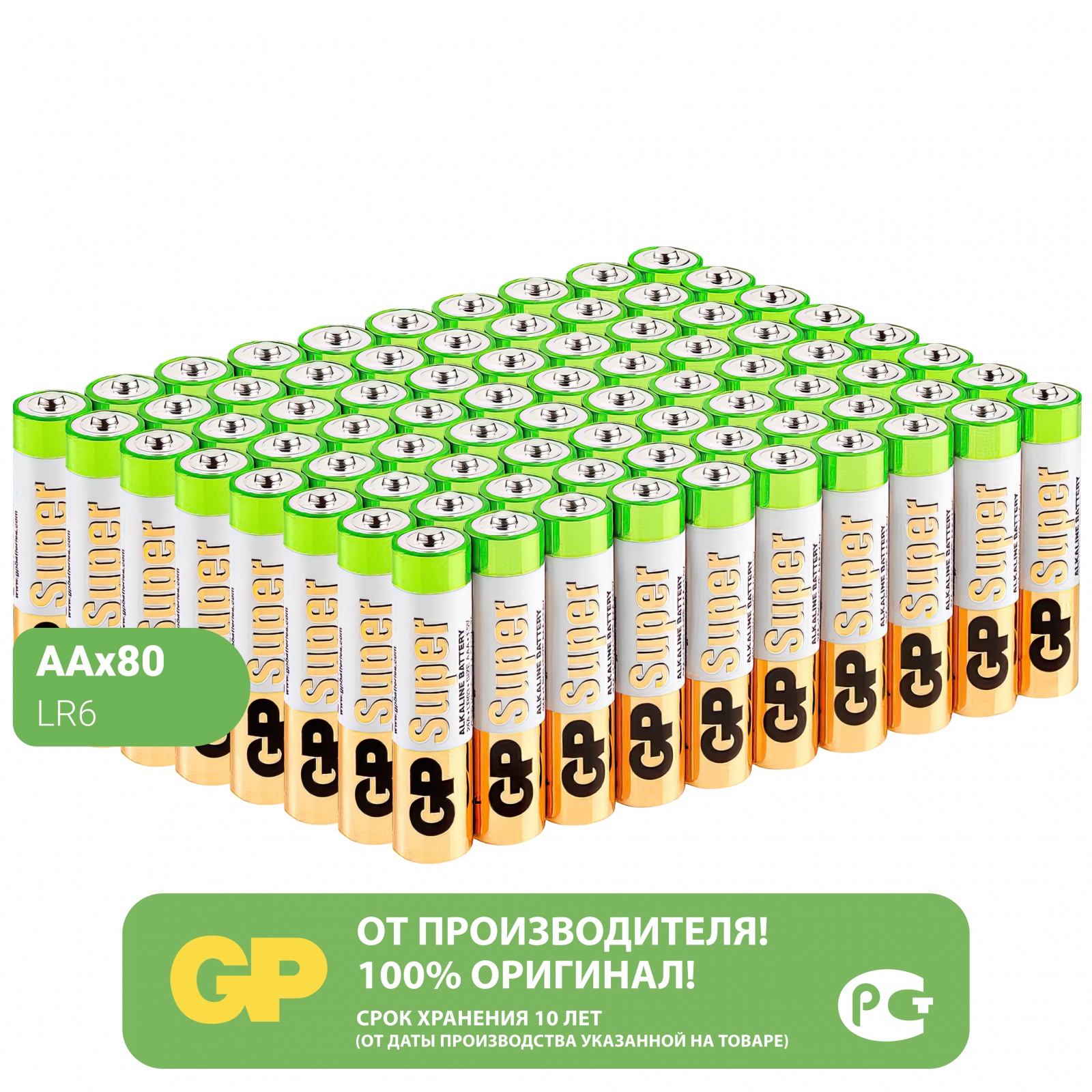 • Типоразмер: батарейки, формат АА (LR6)Все батарейки торговой марки GP сертифицированы согласно российскому стандарту ГОСТ и международным стандартам ISO9001 и ISO14001.