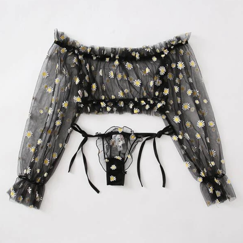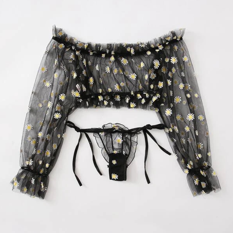 Женский комплект нижнего белья, сетчатый топ с открытыми плечами и трусики, костюм из двух предметов