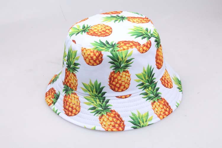 Pineapple Printed Double-Sided Bucket Hats For Women Men Summer Sun Boy Girls Panama Caps Fishing Black Cotton Fisherman's Hat