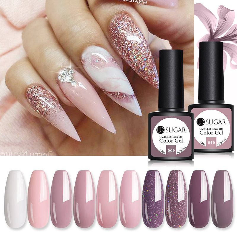 1 бутылка 7,5 мл UR SUGAR Nude Розовый Блестящий цветной гель