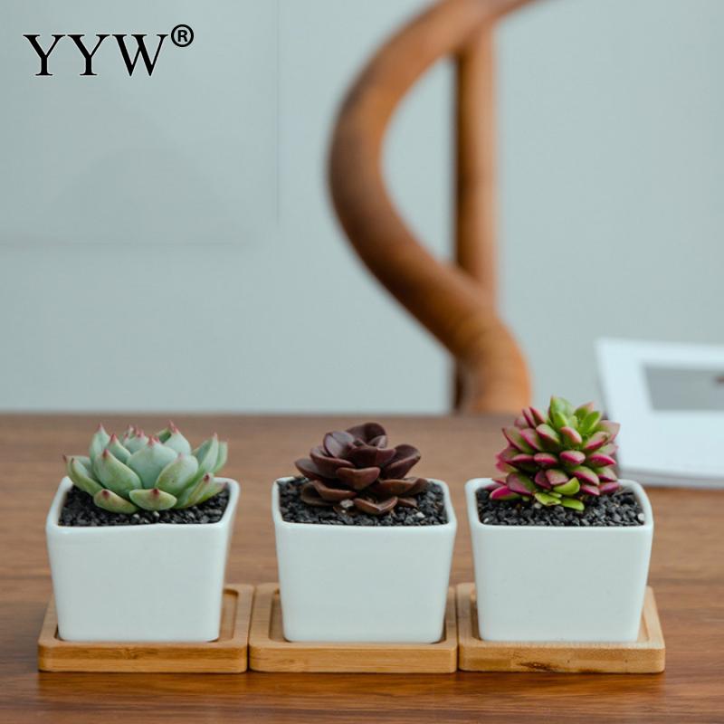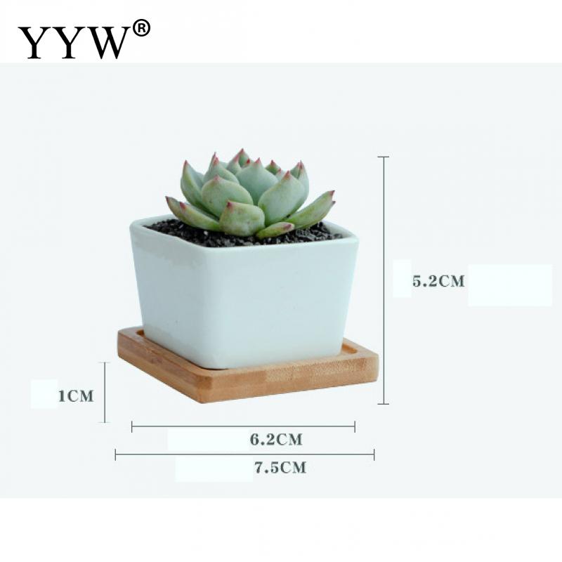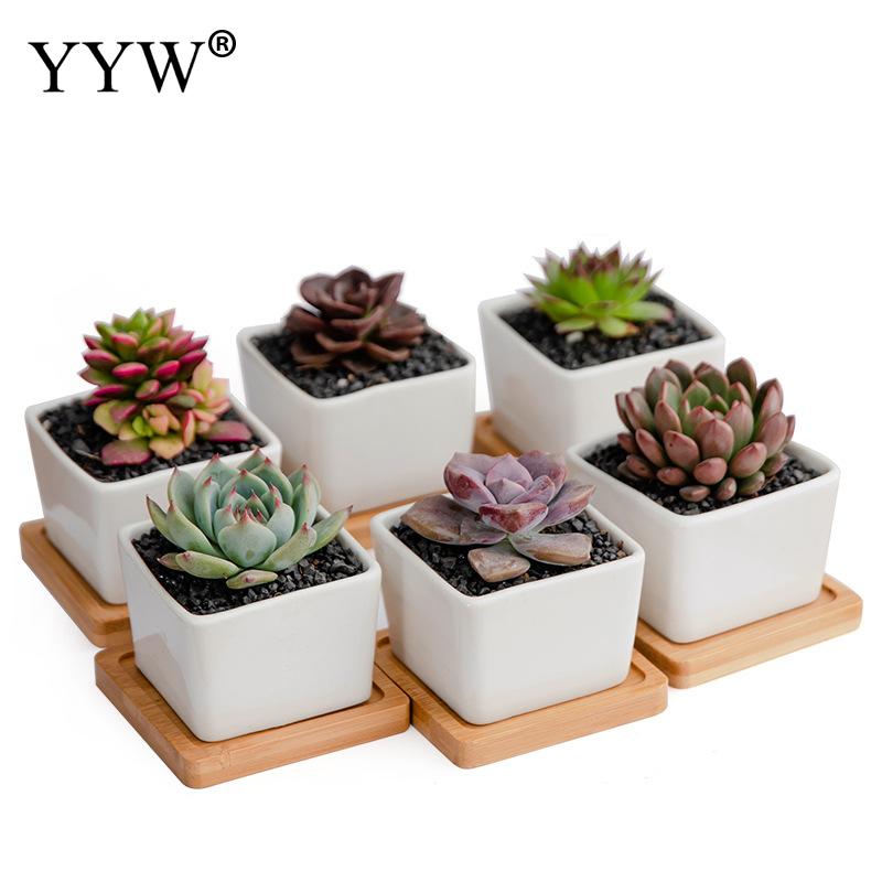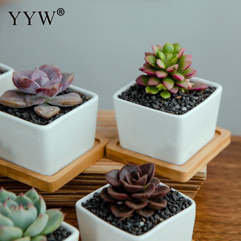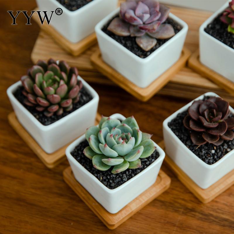 6 шт./лот белый сочный цветочный горшок керамический креативный бамбуковый поднос с квадратным настольным простым горшечным маленьким горшком для дома
