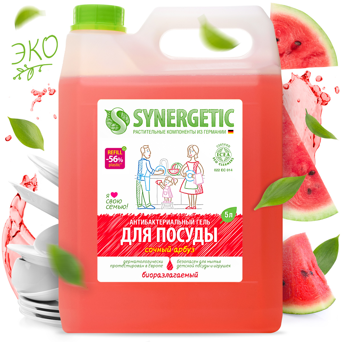 Гель для мытья посуды Synergetic "Арбуз", 5л