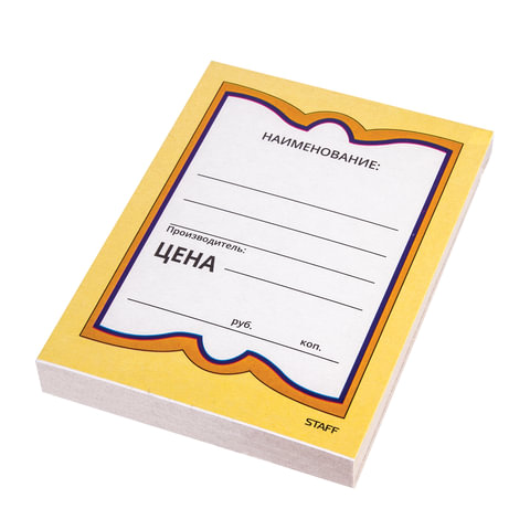 Картонные ценники STAFF наиболее оптимальны для магазинов, торгующих продуктами питания, поскольку картон сохраняет форму при изменении влажности и температуры. Удобные поля позволяют нанести информацию о фирме, наименовании и цене.