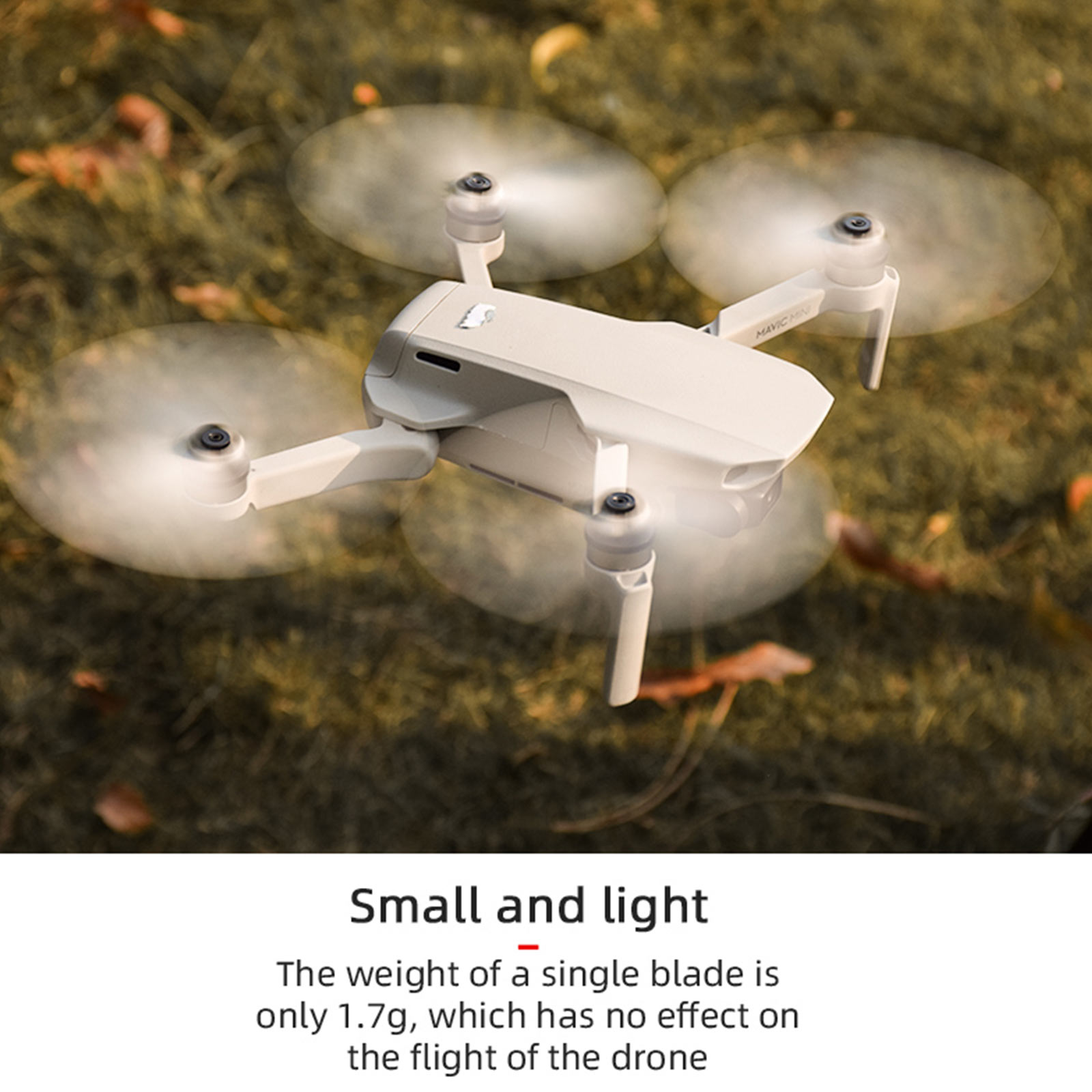 Вес одного лезвия составляет всего 1,7 г, который не повлияет на нормальное полета ваши любимые беспилотного летательного аппарата.