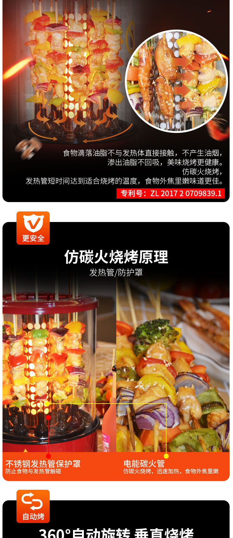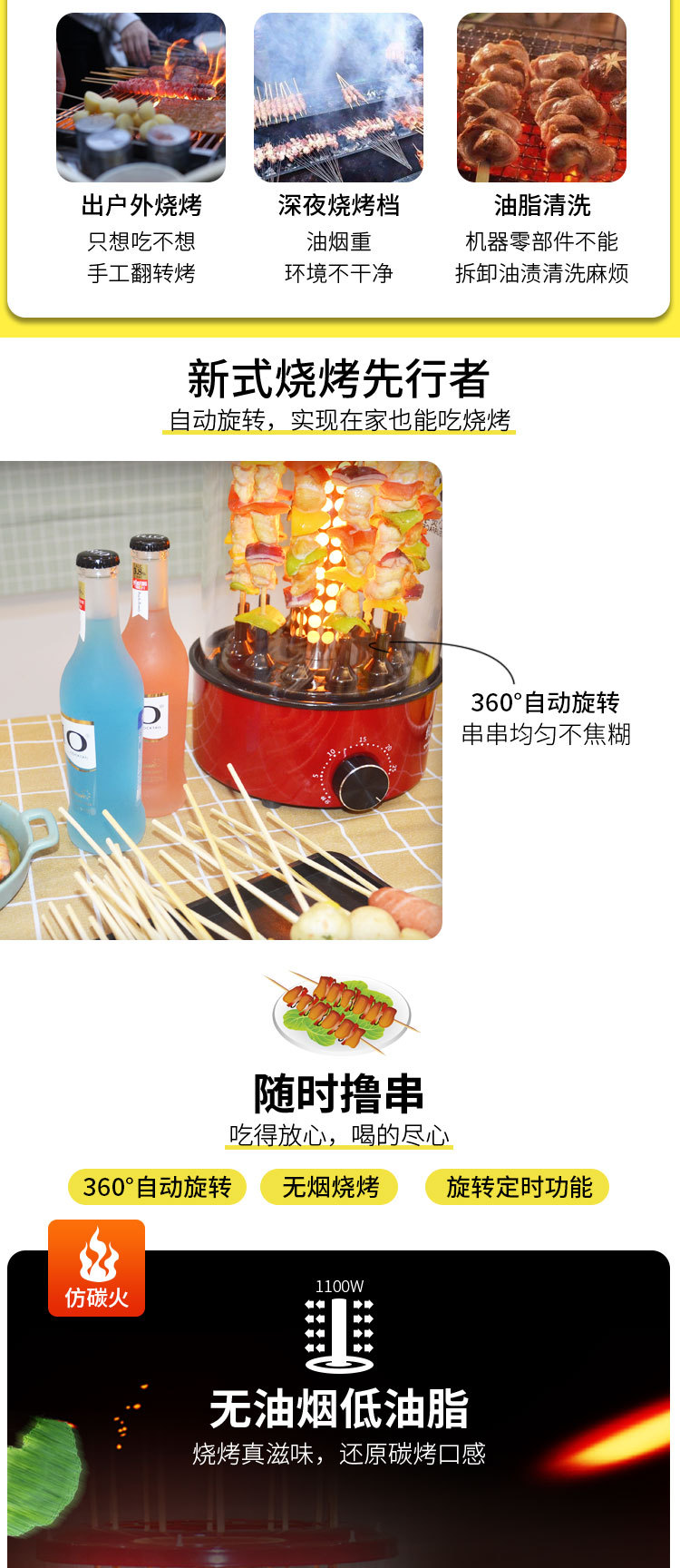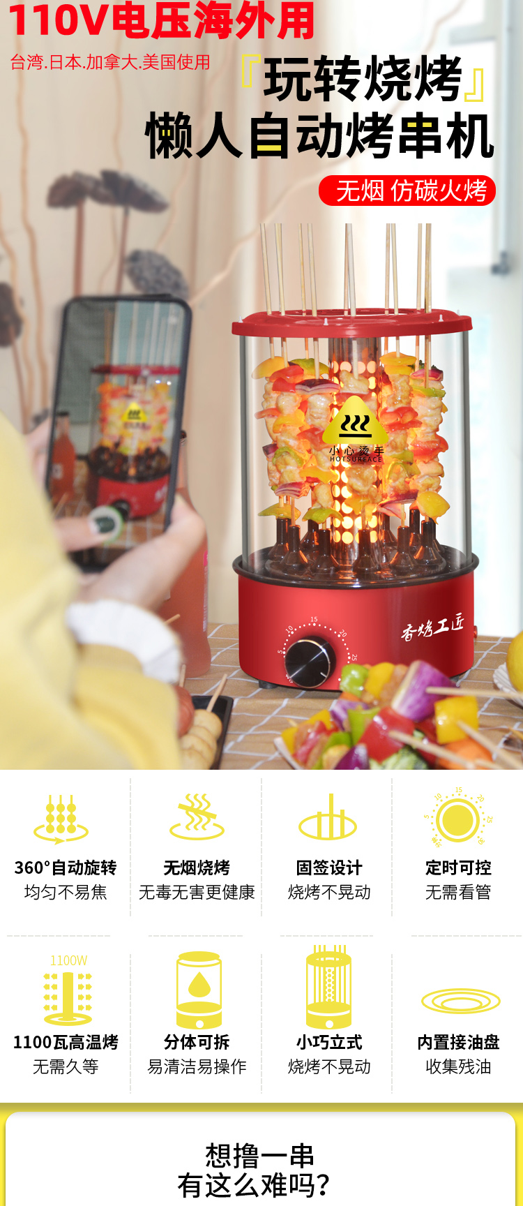 110V Vertical Electric Bbq Kebab Grill Machine Automatic Rotating Barbecue Smokeless Oven Rotary Household Lamb Skewers
