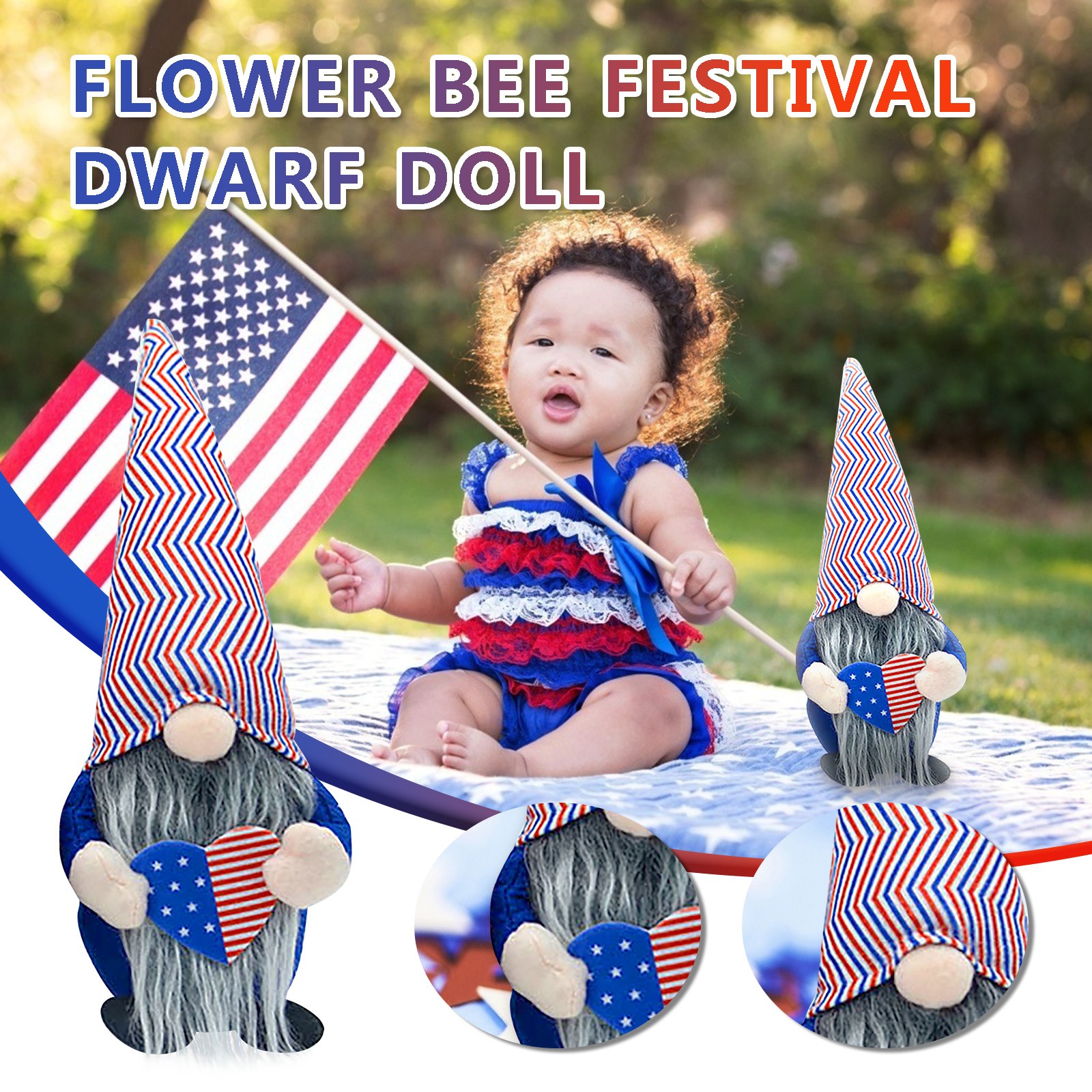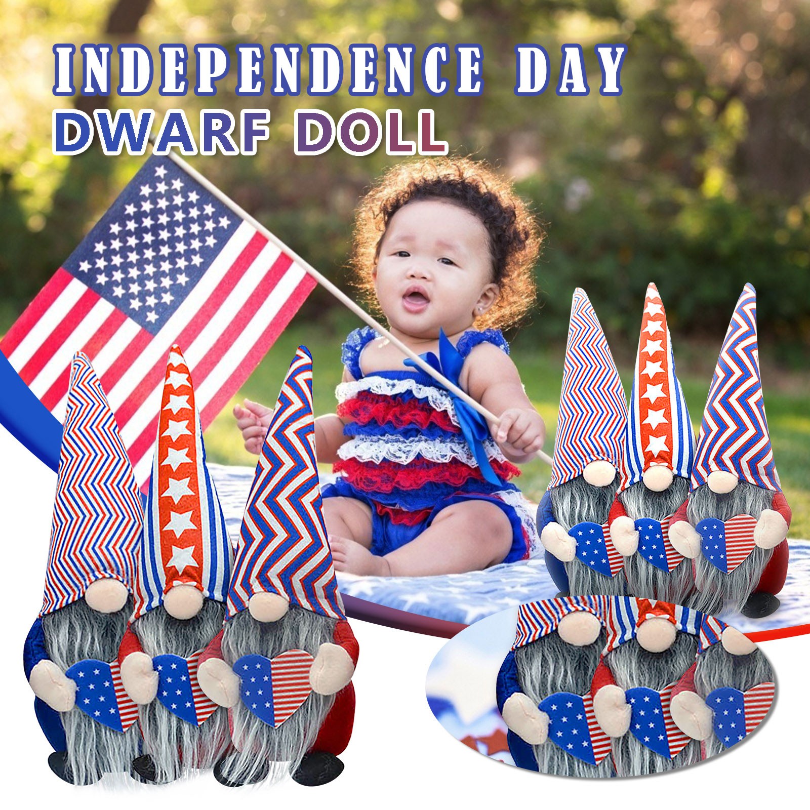 Product name: patriotic dwarf doll Material: cloth Packing method: opp Packing size (approximately): 11 x 6 x 34CM Suitable age: over 3 years oldContain: