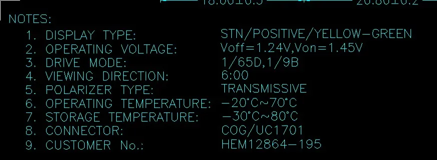 1. Тип диаплея: STN/Posituve/желто-зеленый