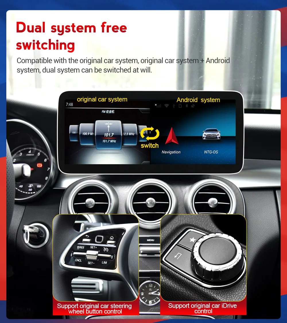 1. Совместимость с автомобилями с/без оптоволокна.2. Совместимость с автомобилями с/без оригинальной навигационной функции3. Совместимость с автомобилями с оригинальным экраном 2,0/4,3/6,5/7,0/8,0 дюйма.4. Совместим с заводской CAN-шиной, управлением на рулевом колесе, дверью, не закрытой Warnig,Информация об автомобиле и т. Д.6. Поддержка оригинального радио.7. Поддержка заводского управления джойстиком.8. Поддержка оригинальной траектории парковки/радара.9. Встроенный Bluetooth и поддержка оригинального Bluetooth.10. Поддержка оригинальной камеры заднего вида и реверсивного траектора.11. Только один экран, без внешней коробки, простота установки, plug and play.Многоязычный:Китайский, английский, португальский, арабский, русский, немецкий, французский, турецкий, испанский, итальянский и т. Д. (модельБолее 70 видов языков)![]()