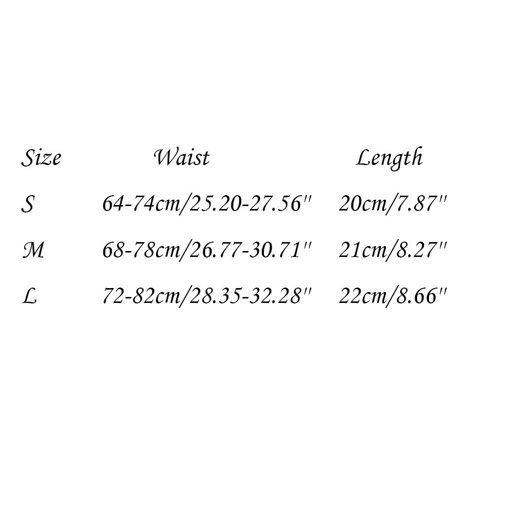 Размеры Талия Длина S 64-74 см/25,20-27,56 дюйма 20 см/7,87'' М 68-78 см/26,77-30,71 дюйма 21 см/8,27'' L 72-82 см/28,35-32,28'' 22 см/8,66''