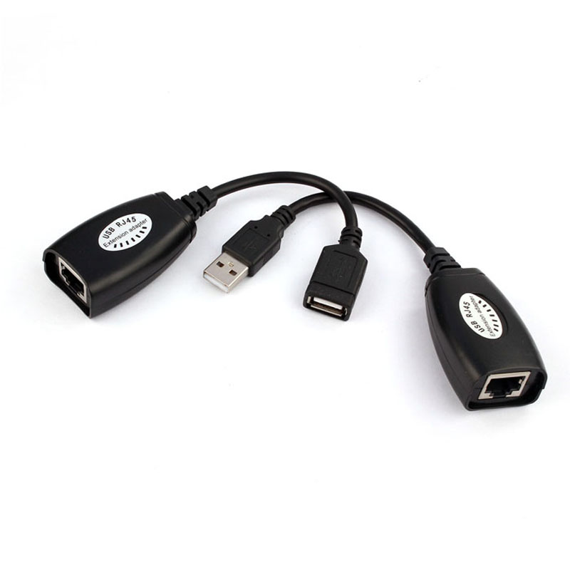 1 комплект USB Удлинитель адаптера до 150 футов с помощью кабеля CAT5 RJ45 LAN (без розничной продажи Коробка. Безопасно упаковывается в пузырчатую сумку)