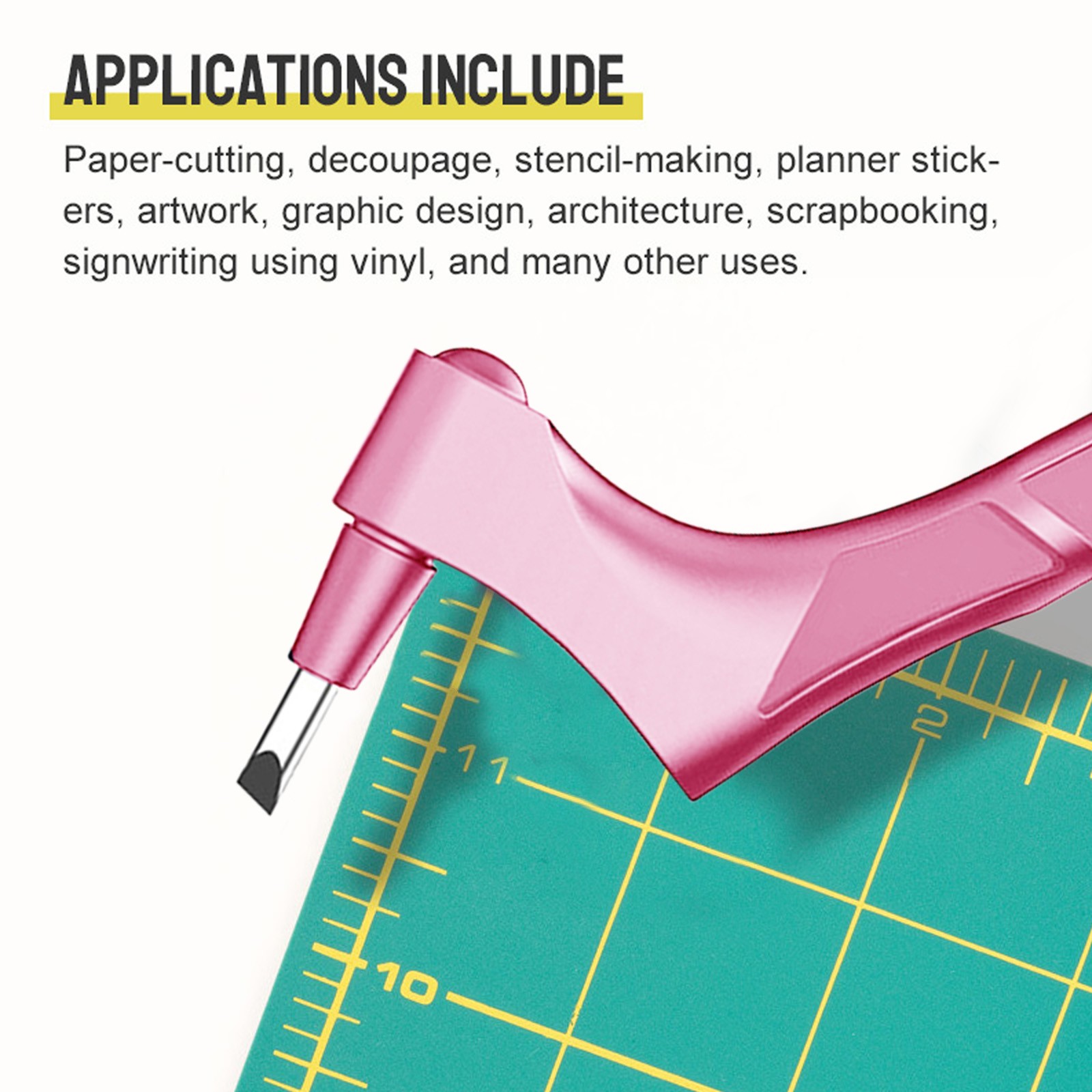 Приложения включают в себя: резку бумаги, декупаж, трафаретное изготовление, планировщик наклеек, художественное оформление, графический дизайн, архитектуру, скрапбукинг, написание знаков с помощью винила и многие другие виды использования.