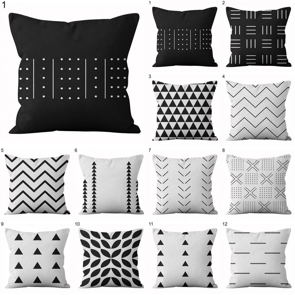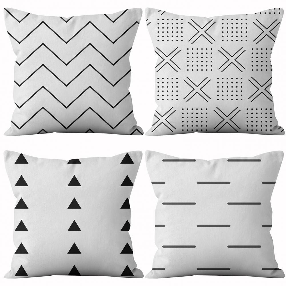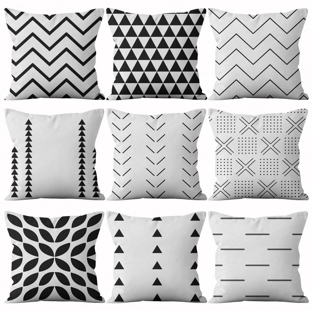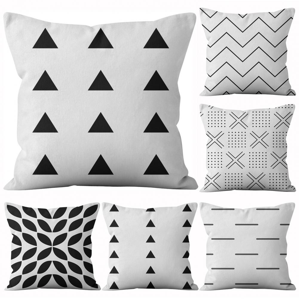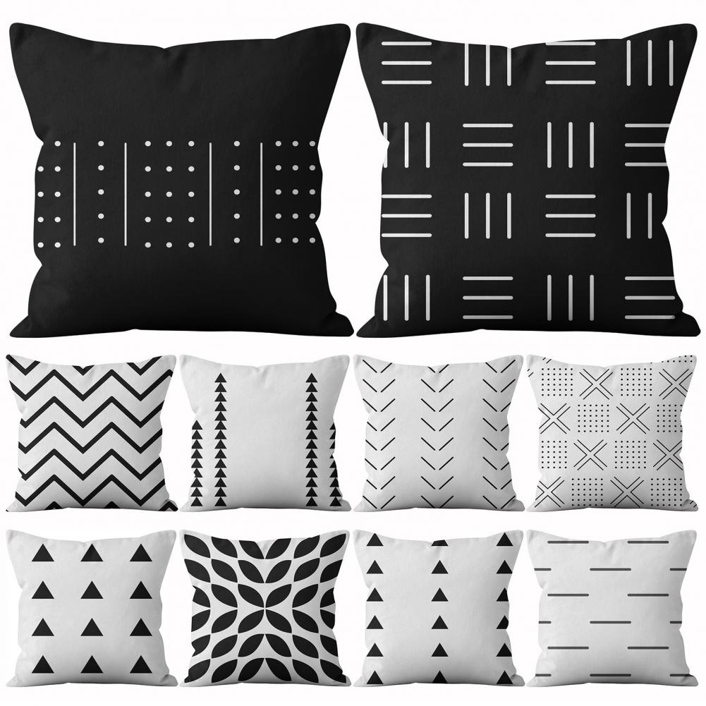 Белый черный короткий чехол для подушки с геометрическим рисунком, декор мебели, полиэстер, подушка для гостиной, дивана, скольжения для спальни, автомобиля, дивана