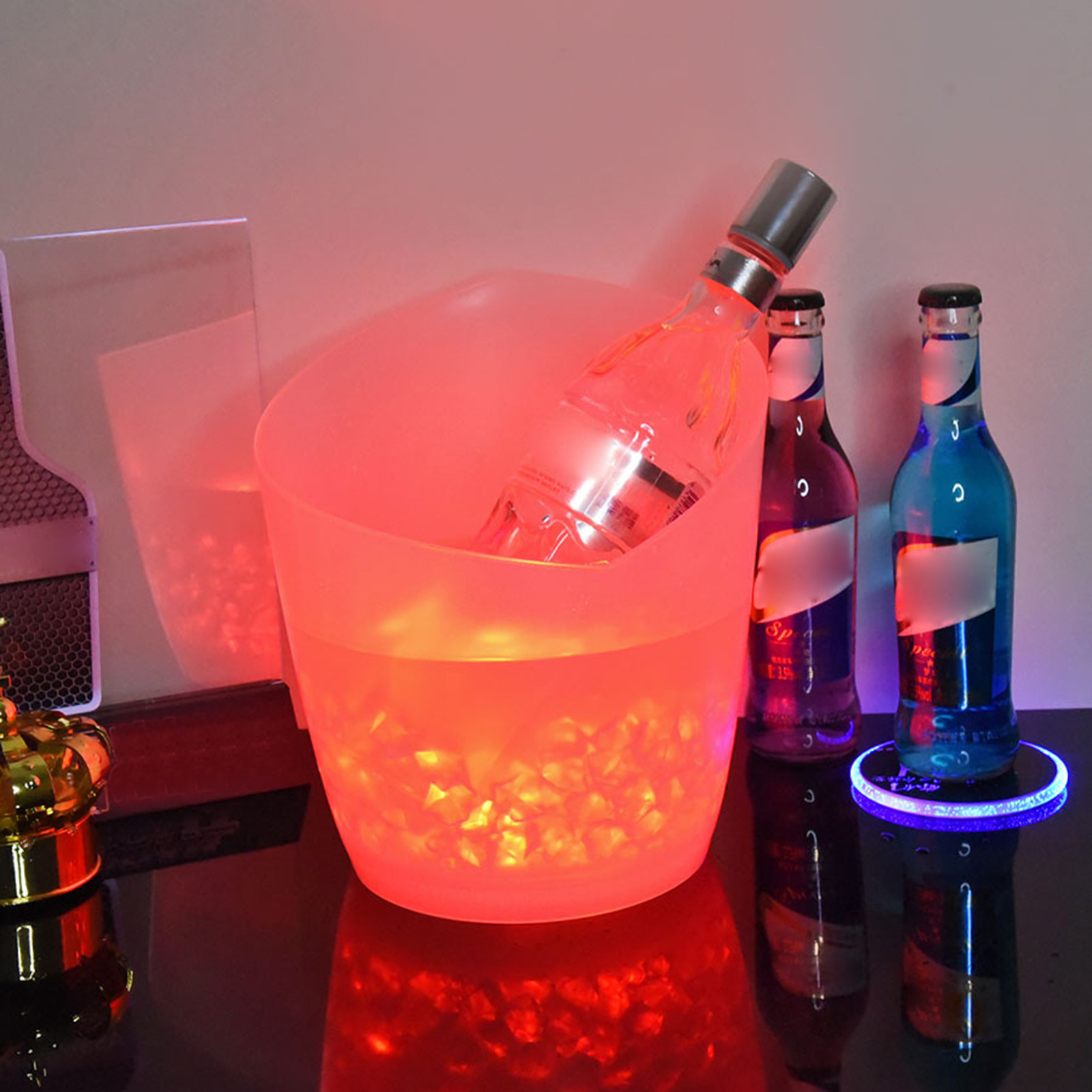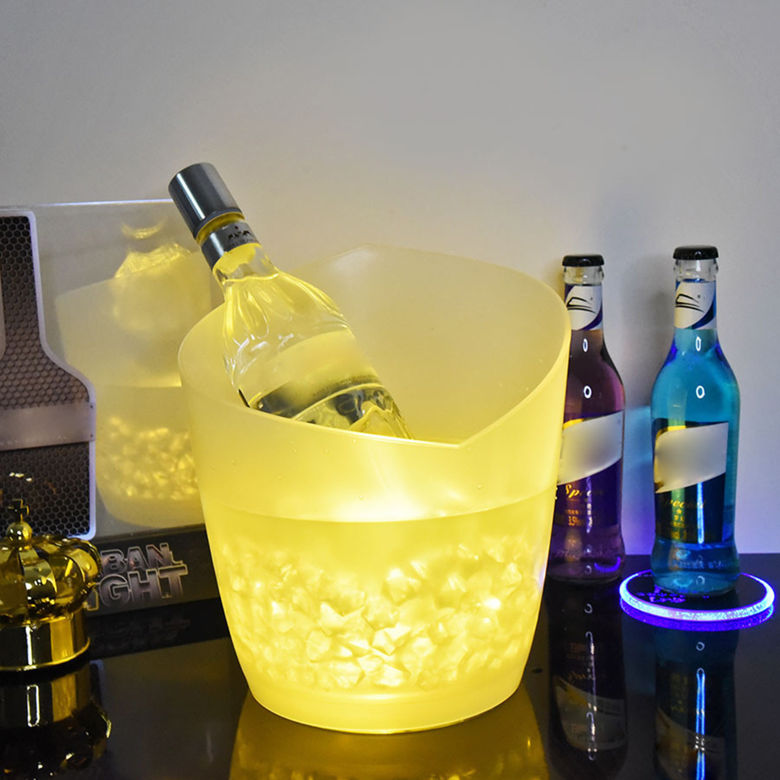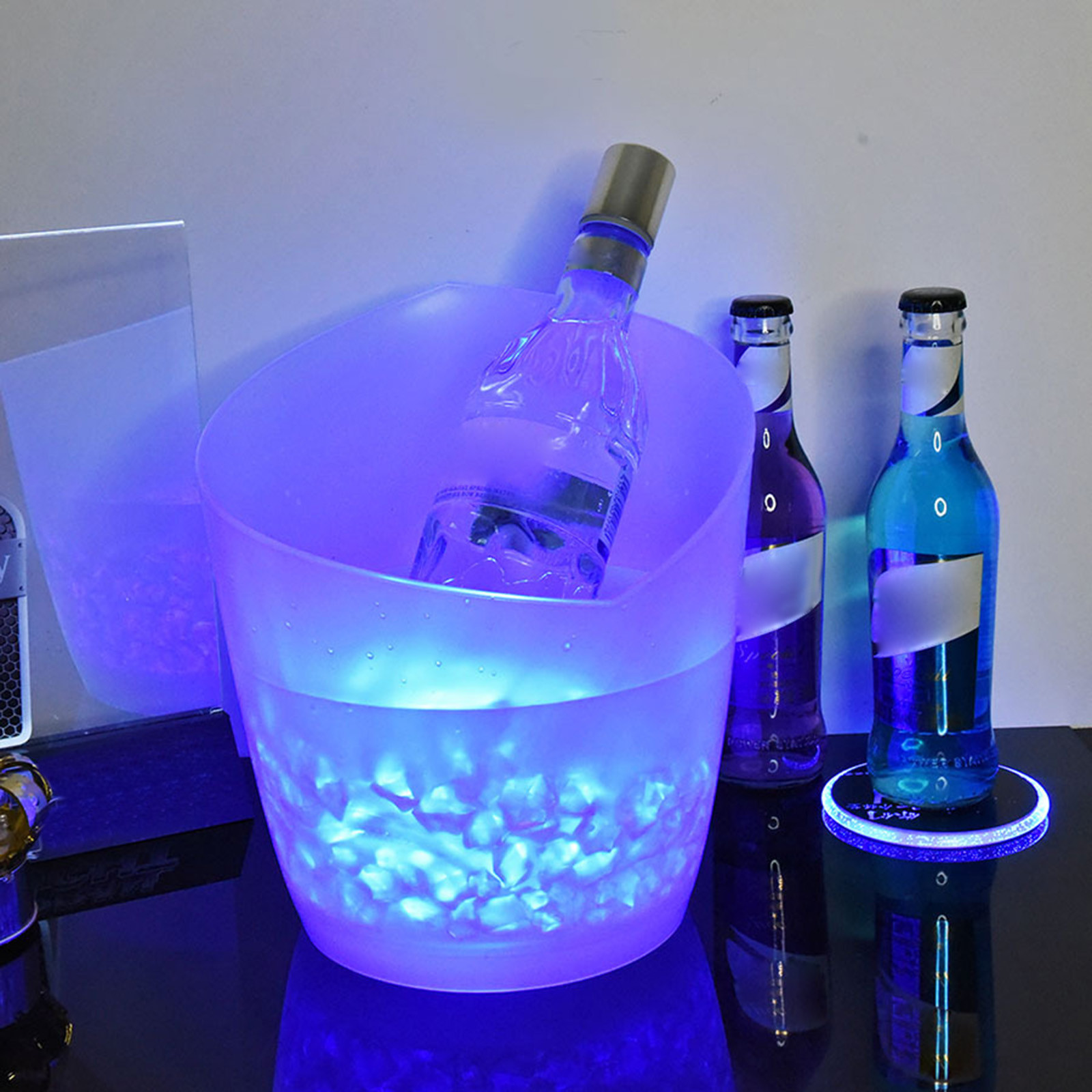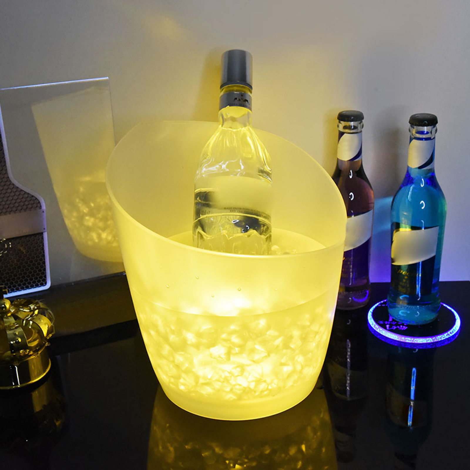 Ice bucket with color changing LED, double layer, for beer drinks