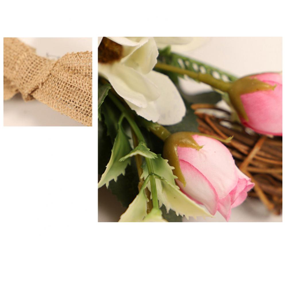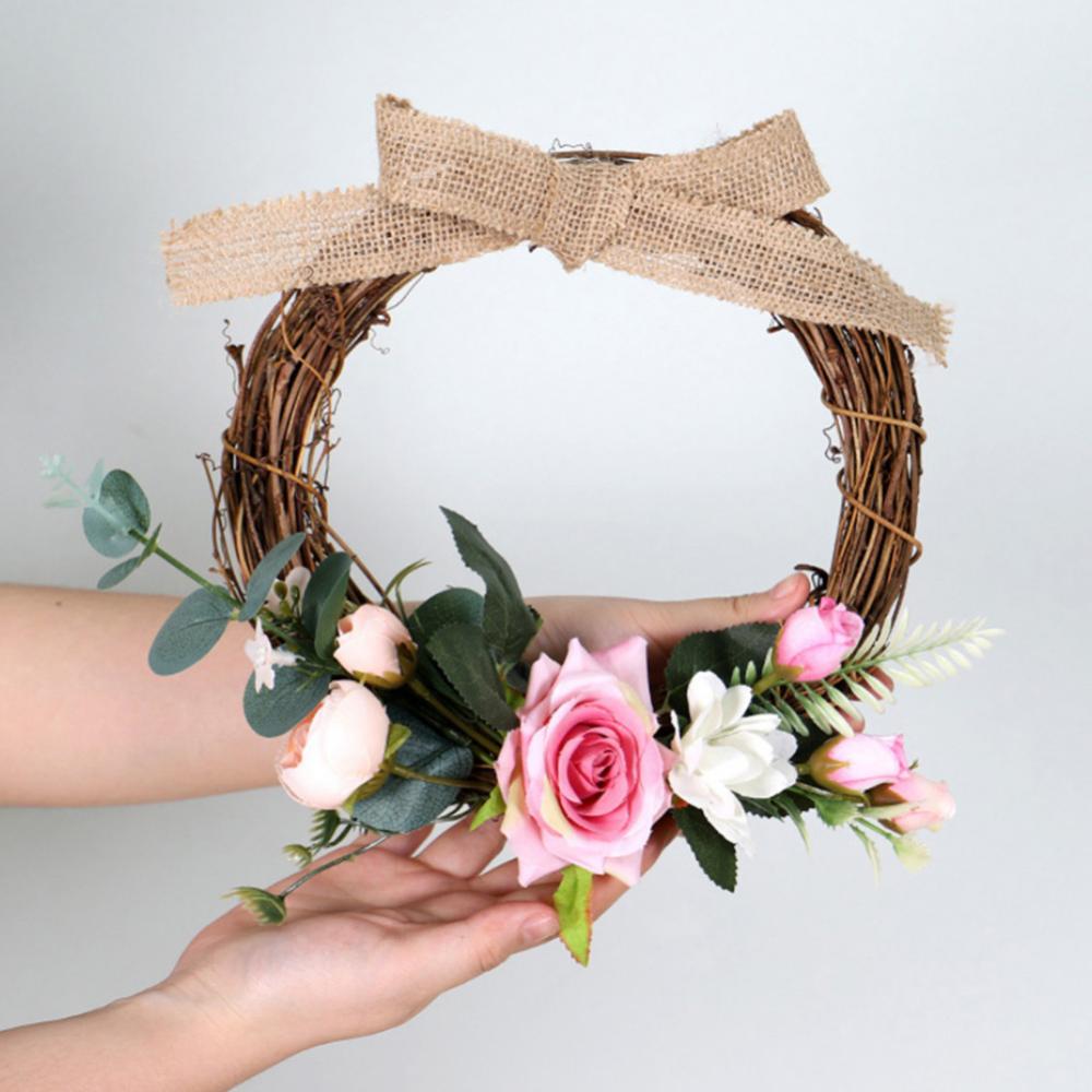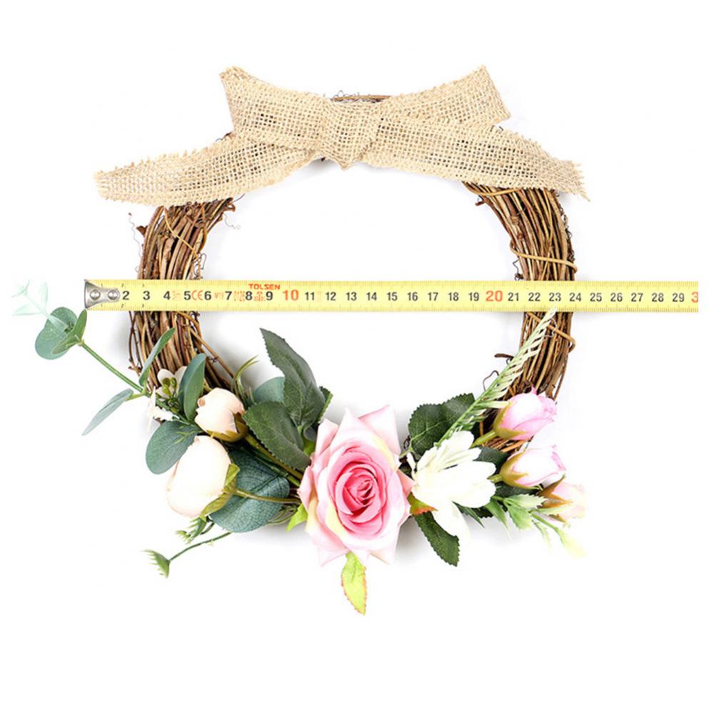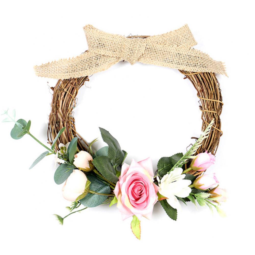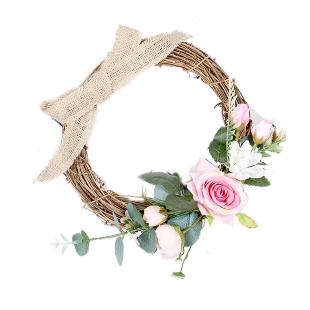 Linen Handmade Braid Bowknot Rose Garland Wreath Home Wall Door Wedding Decor