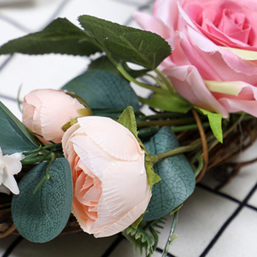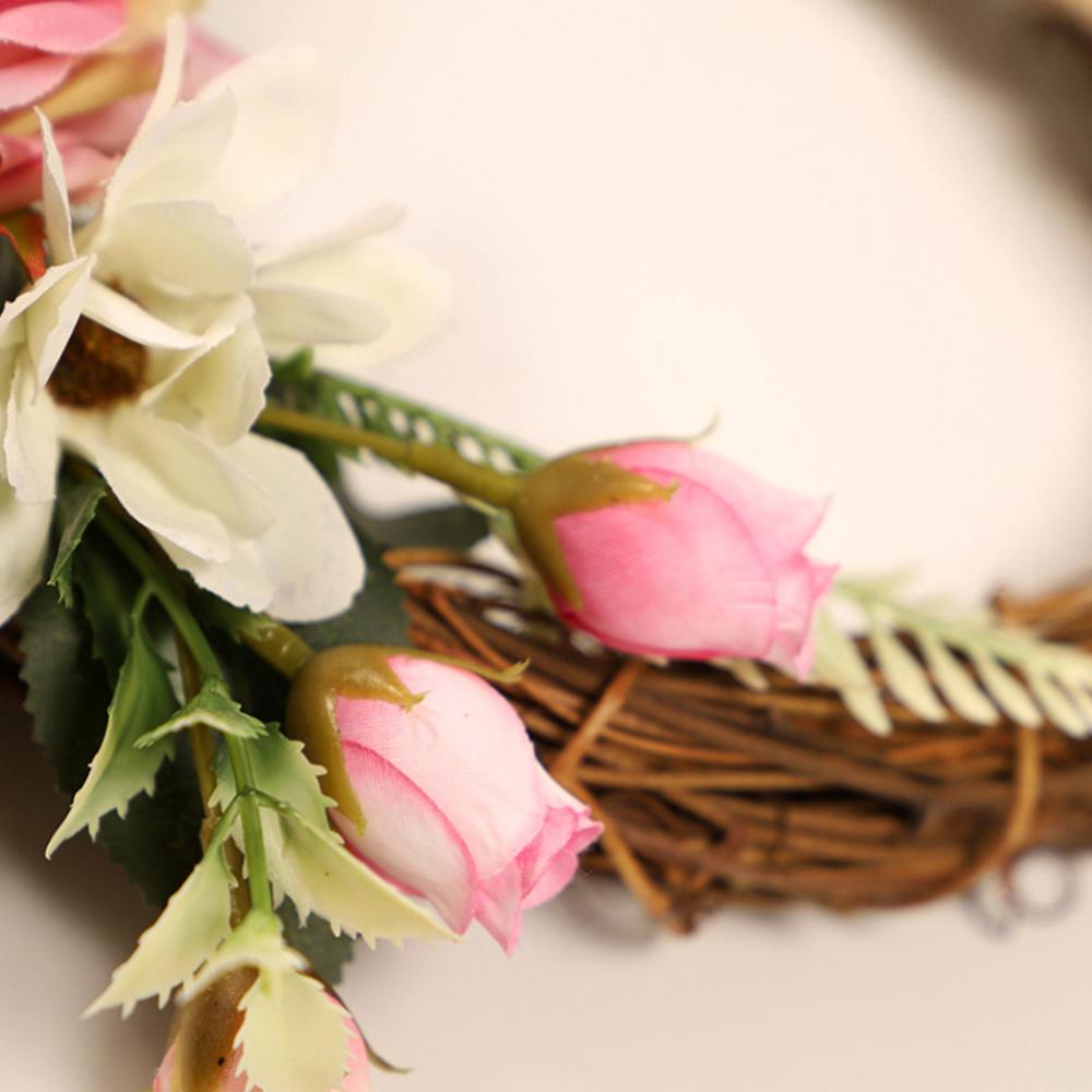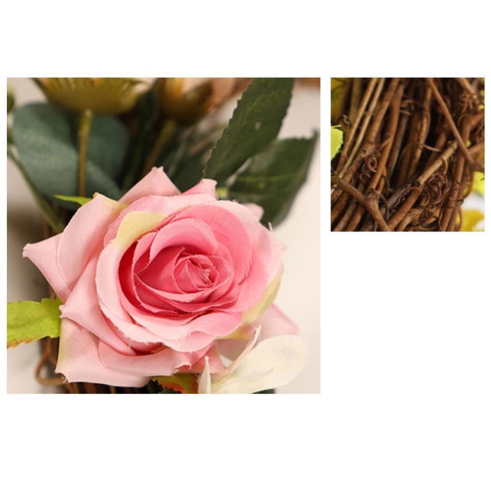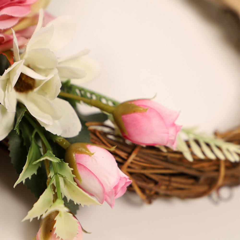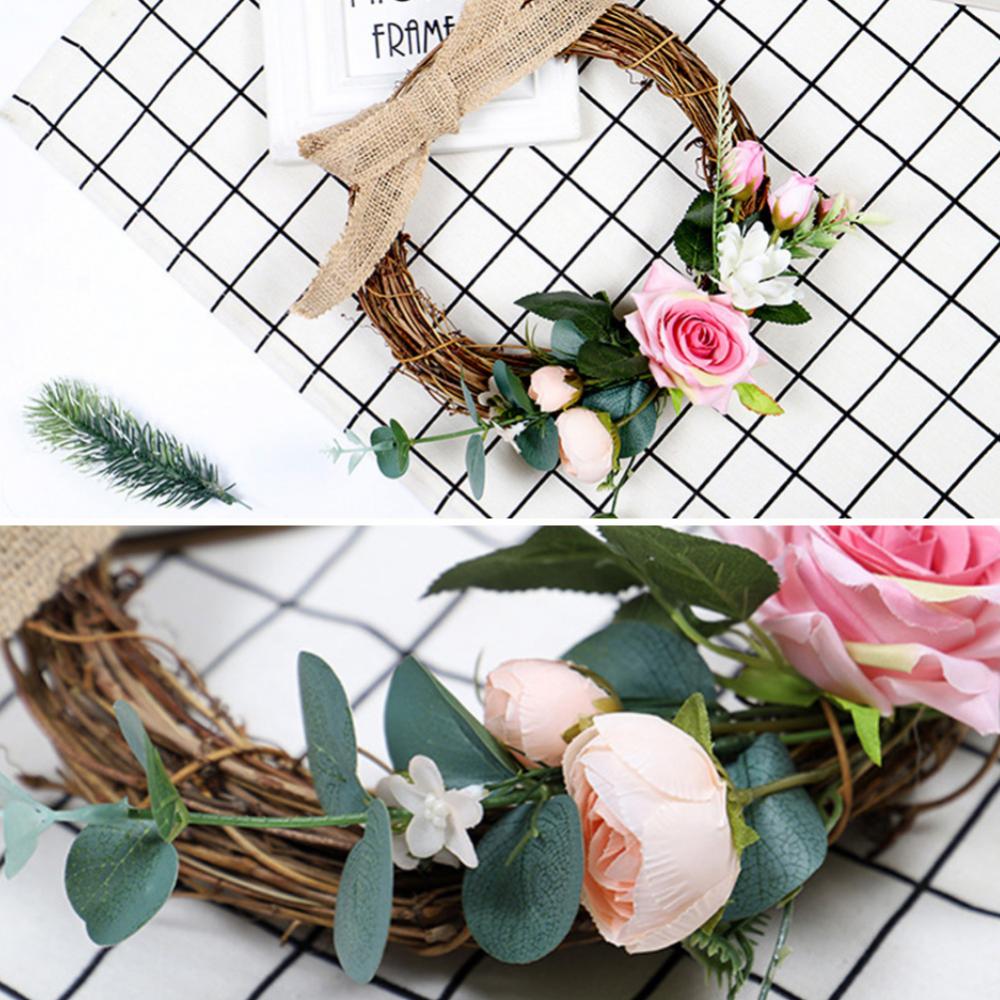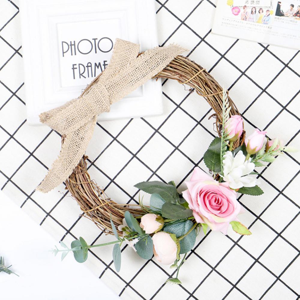 Linen Handmade Braid Bowknot Rose Garland Wreath Home Wall Door Wedding Decor