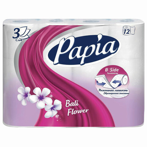 Белая трёхслойная туалетная бумага в рулонах. Нежная текстура с инновационным тиснением и декоративный рисунок придают бумаге особую мягкость и обеспечивают бережный уход за кожей.