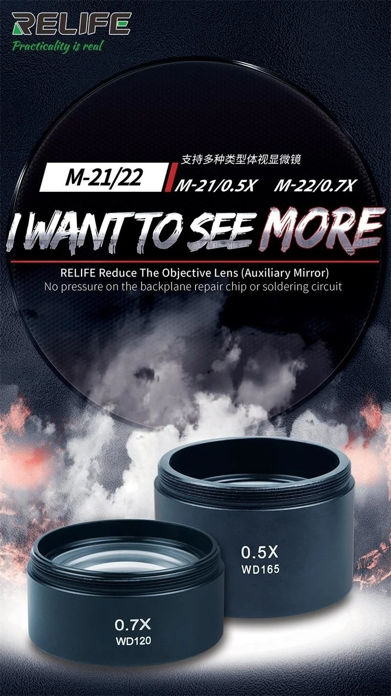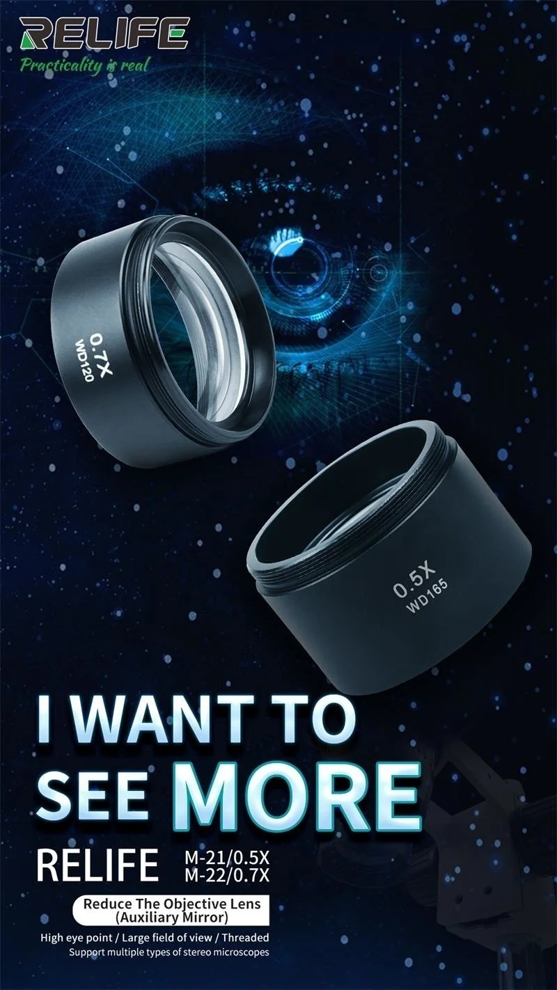RELIFE M-21 0.5X /RELIFE M-22 0.7X микроскоп вспомогательное зеркало> Подходит для различных стерео микроскопов на рынке> Увеличить Эффективное рабочее расстояние и сделать ваше поле зрения более широким