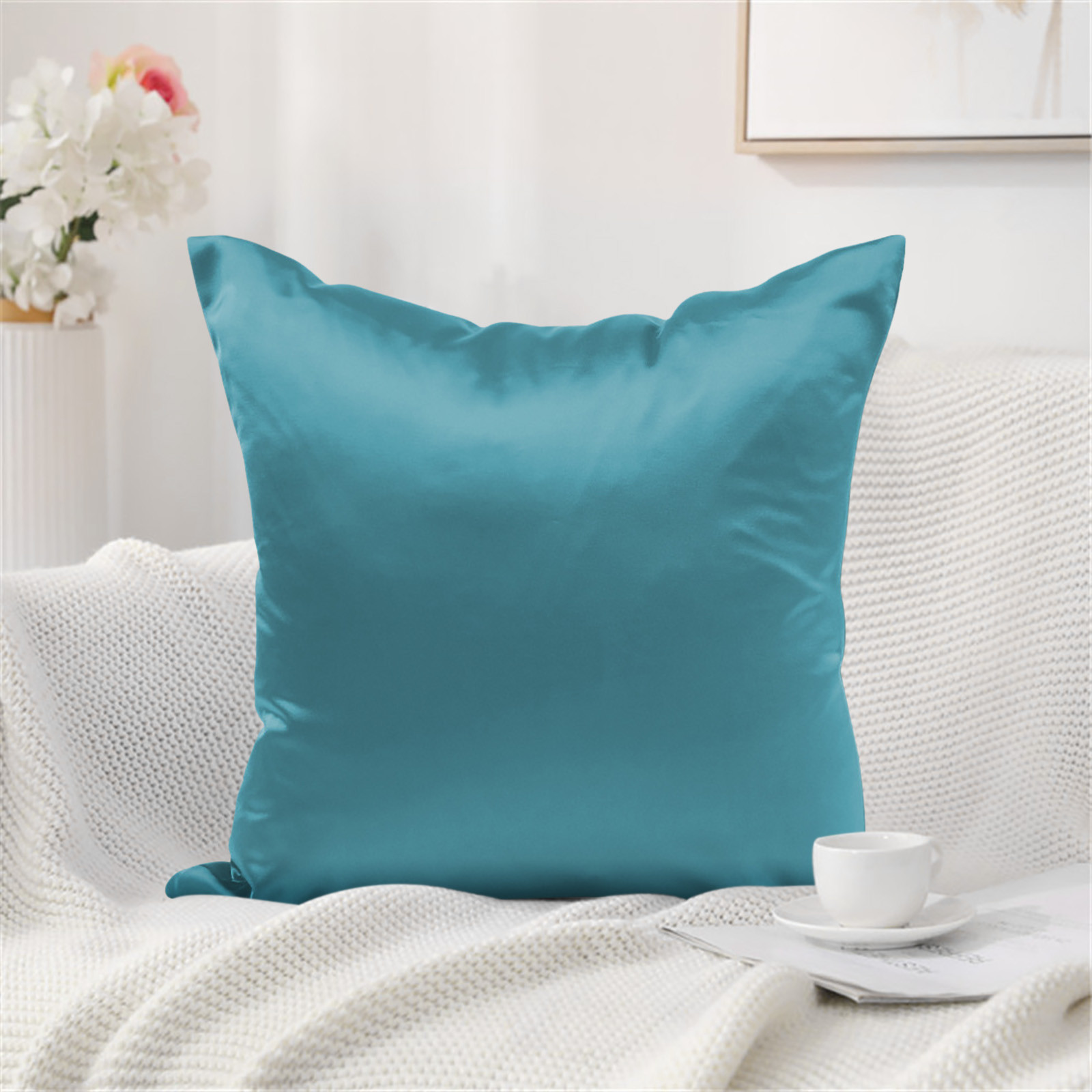 Ice Silk Pillowcase Sofa Pillow Summer Cooling Back Cushion Solid Color Pillow