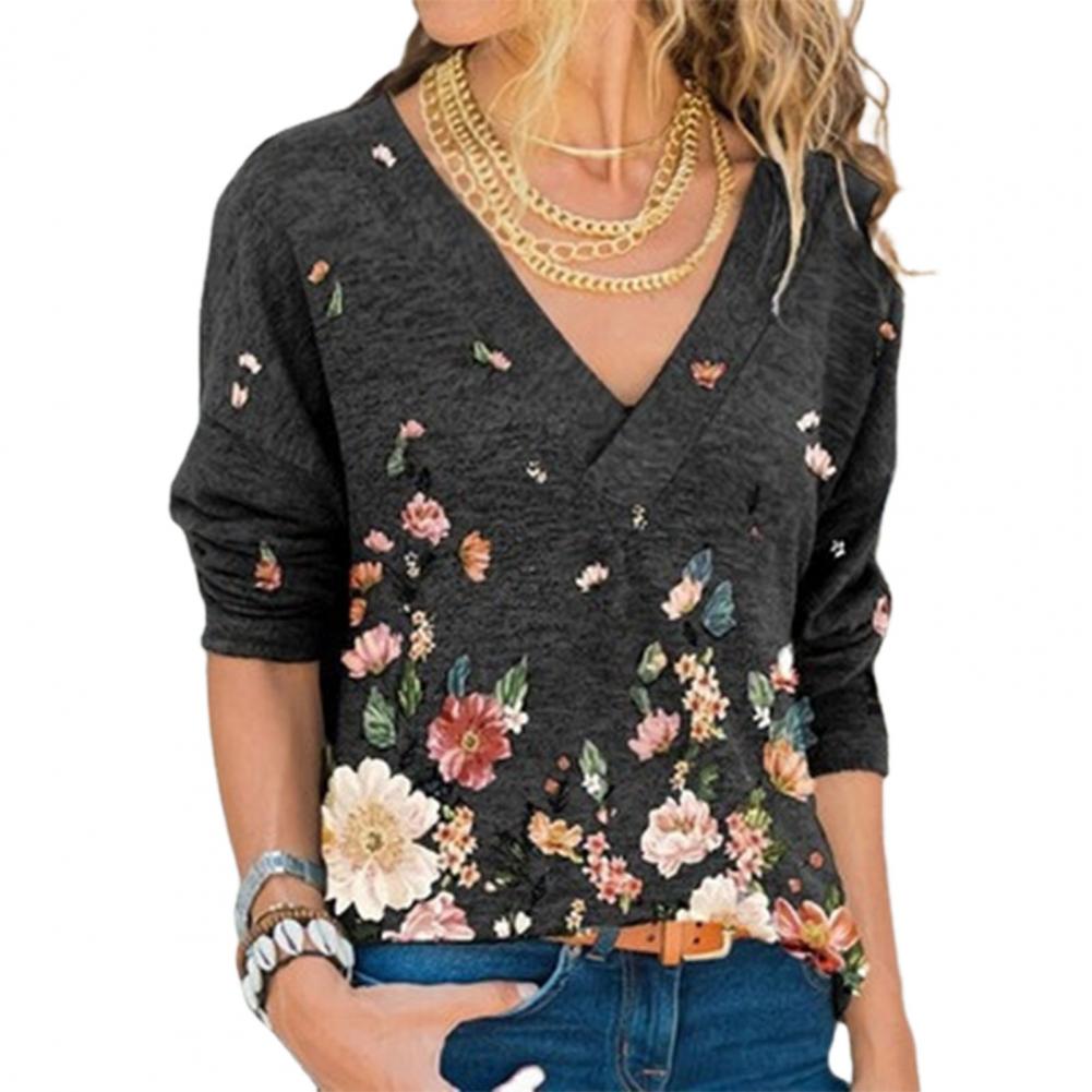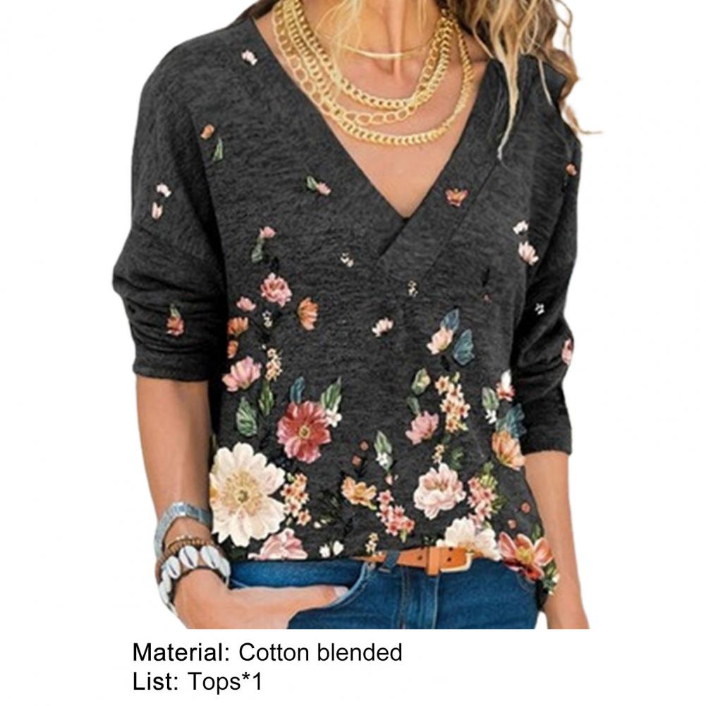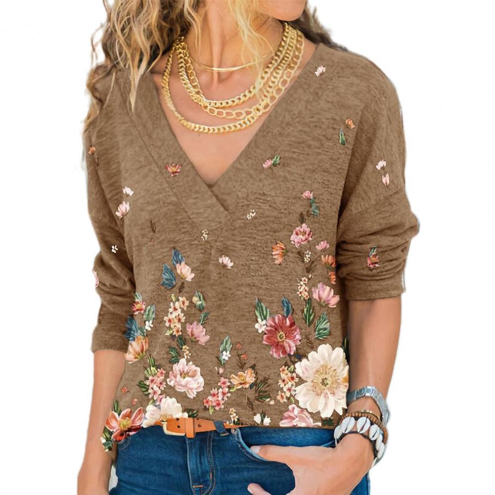 Свободная Осенняя рубашка с v-образным вырезом, длинными рукавами и цветочным принтом позволит вам выглядеть стильно и элегантно.