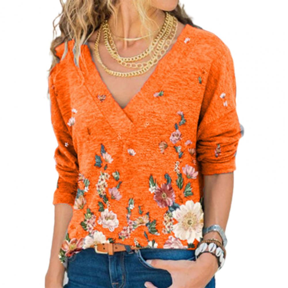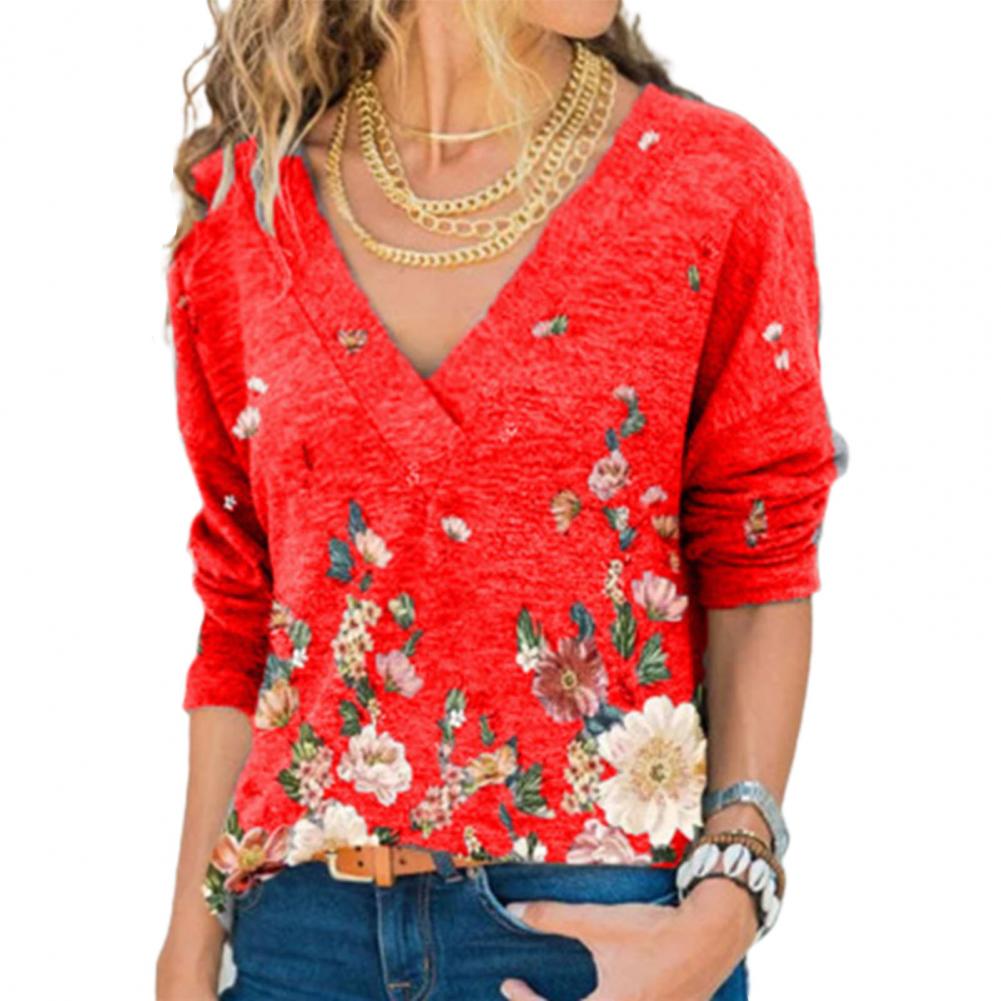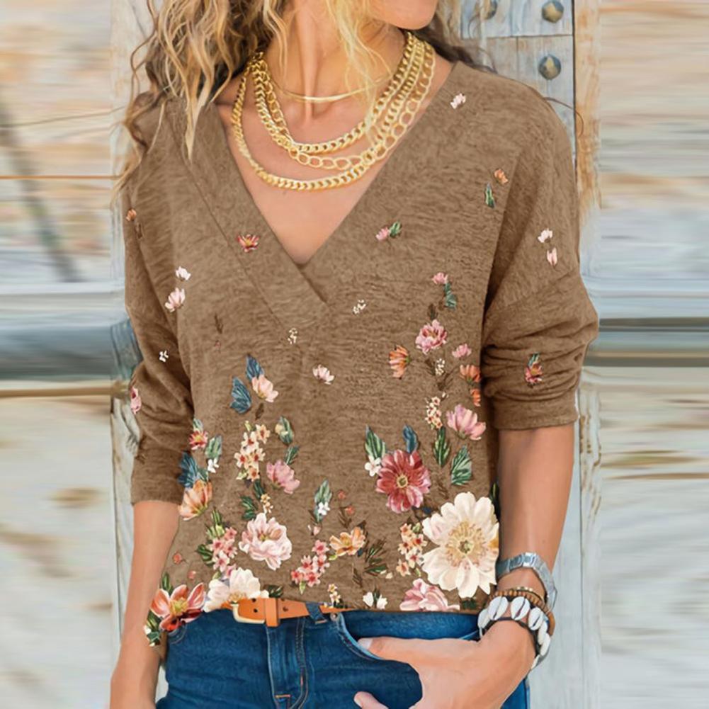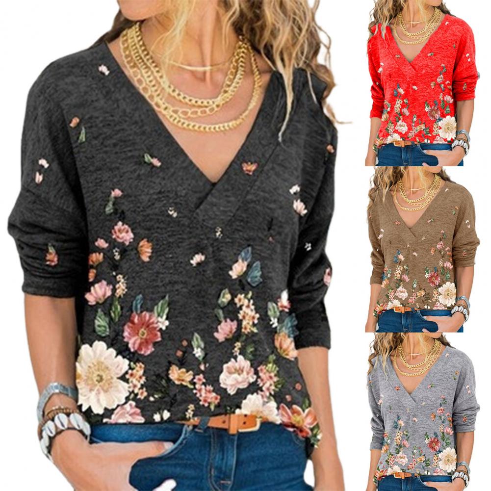 Свободная Осенняя рубашка с v-образным вырезом, длинными рукавами и цветочным принтом позволит вам выглядеть стильно и элегантно.