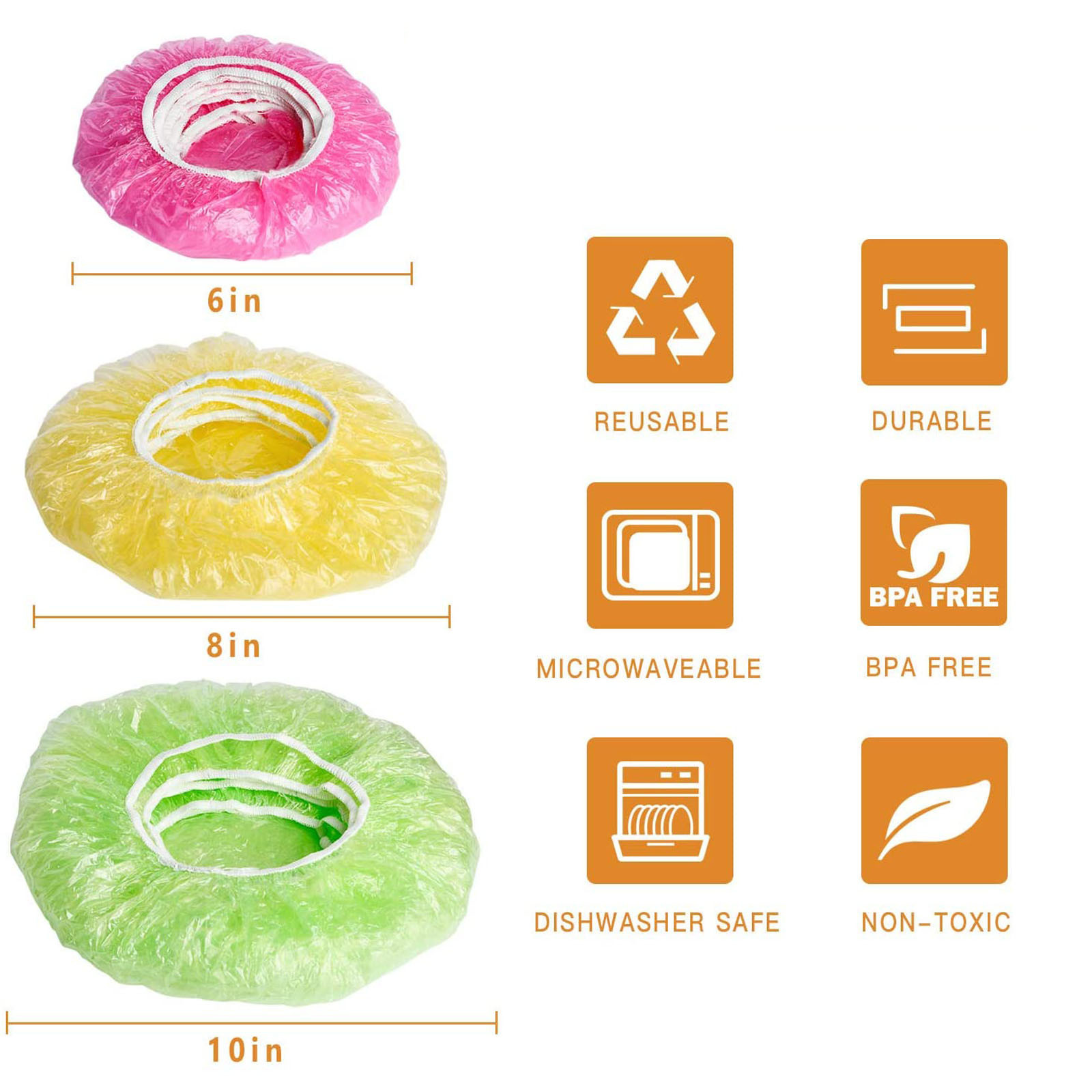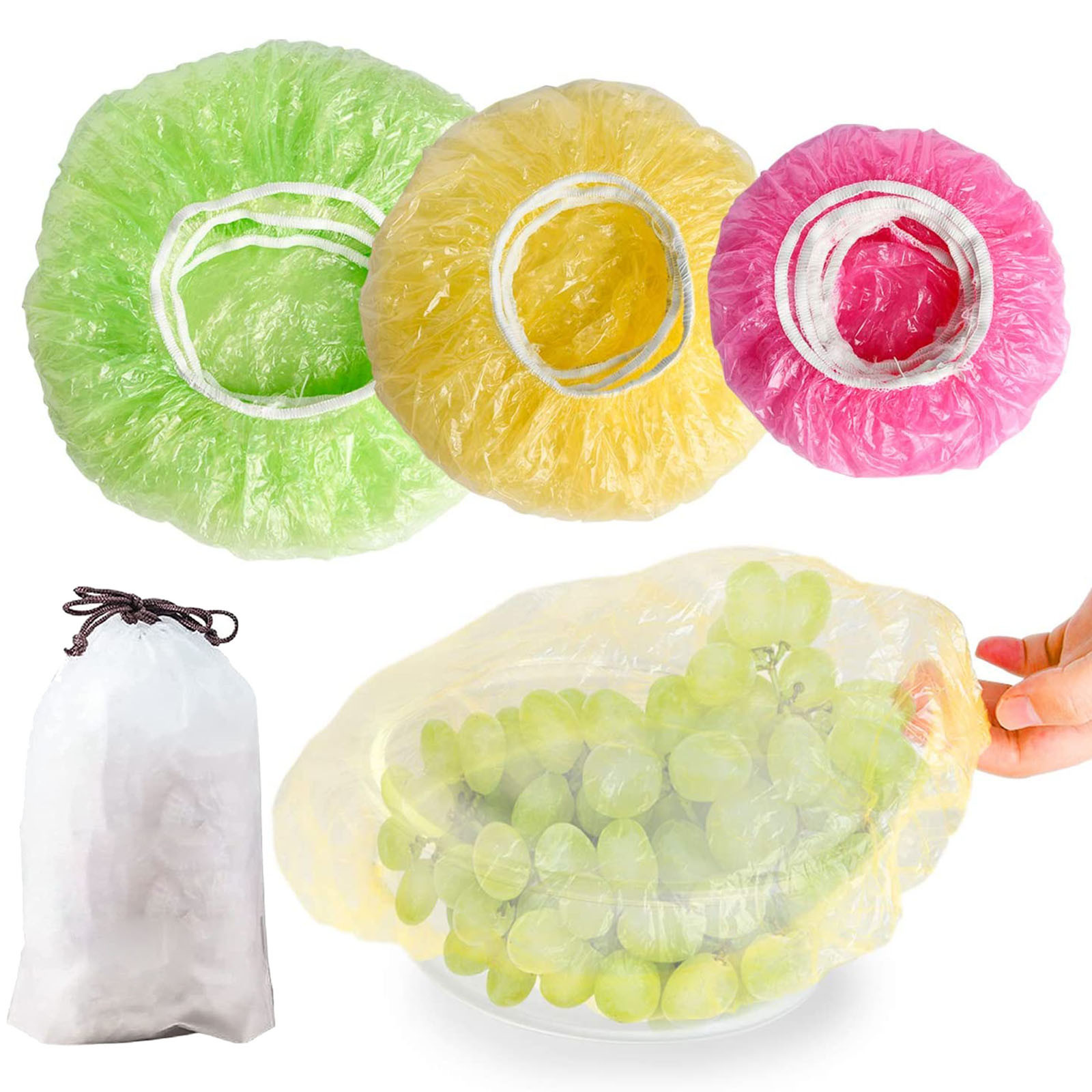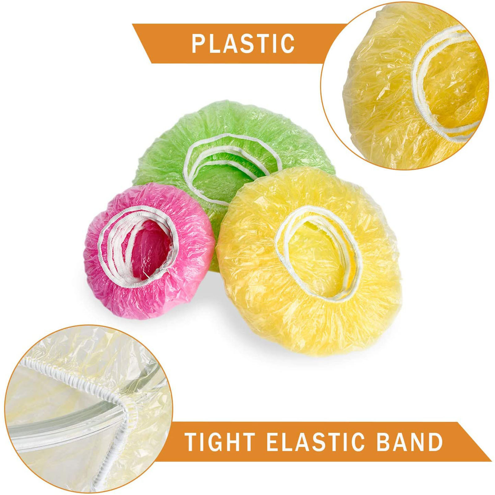 [Правильная упаковка] края каждого тщательно изготовленного прозрачного пищевого покрытия оснащены эластичной лентой с соответствующей кривизной, которая может обернуть обеденную тарелку без чрезмерного напряжения.