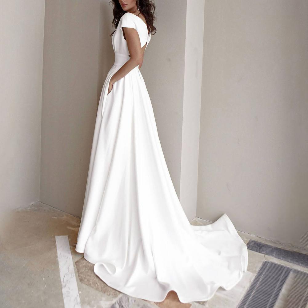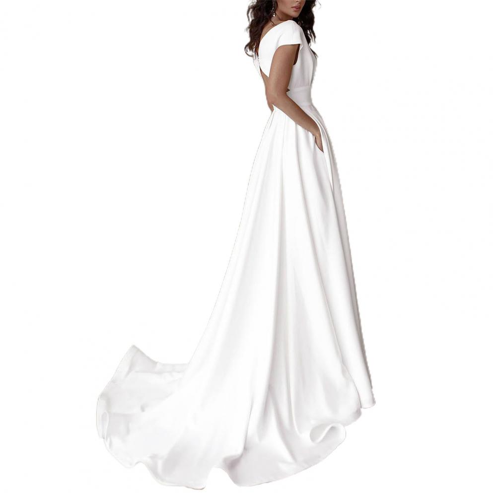 Скромное Свадебное платье с v-образным вырезом 2021, модное короткое платье с коротким рукавом, со складками, Боковым Разрезом, ТРАПЕЦИЕВИДНОЕ свадебное платье с карманами на заказ