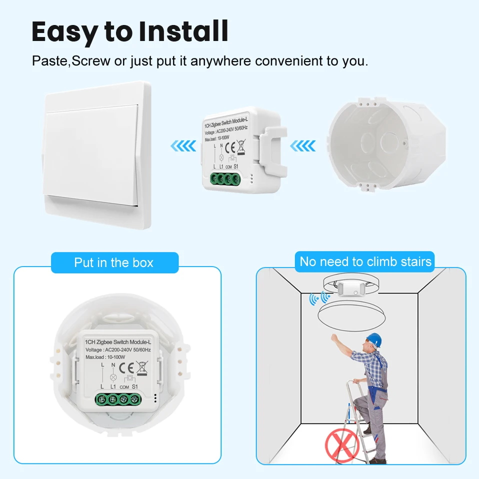 [Легко установить]-модуль переключателя мини-размера может быть установлен в коробке переключателя или в коробке лампы легко. (Примечание: пожалуйста, выключите электричество во время установки).