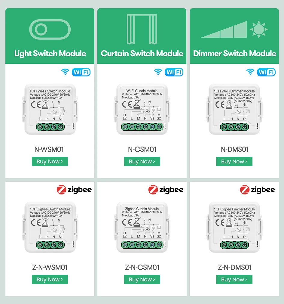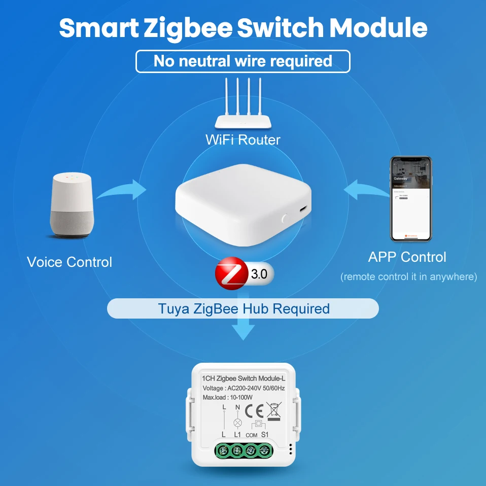-- Тип продукта: 1 банда Zigbee модуль переключателя без нейтрального